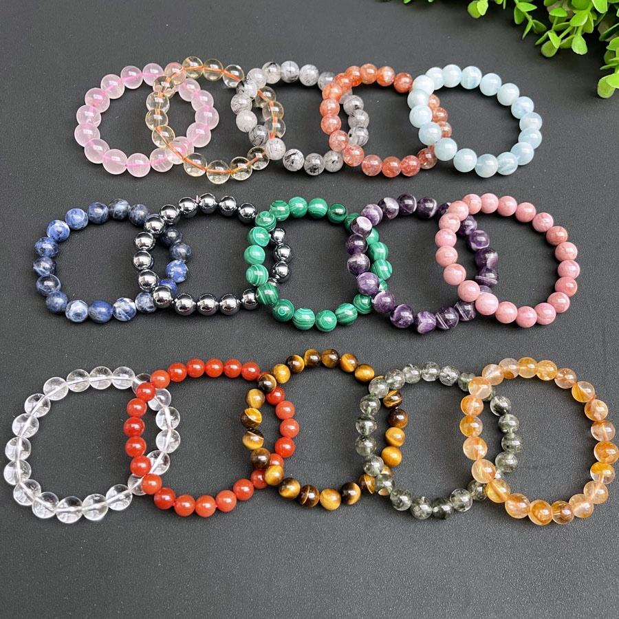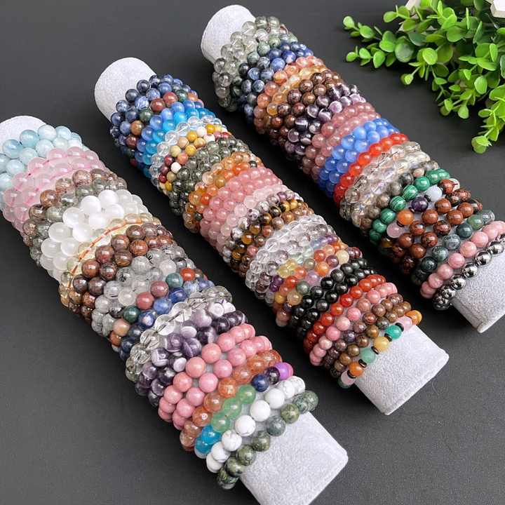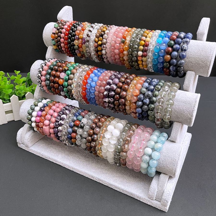 4 มม.6 มม.8 มม.10 มม.อัญมณีควอตซ์Healing Stonesสร้อยข้อมือคริสตัลลูกปัดหินสร้อยข้อมือยืด