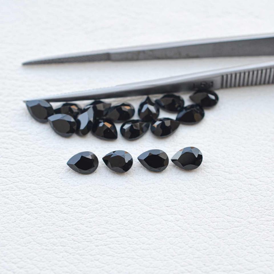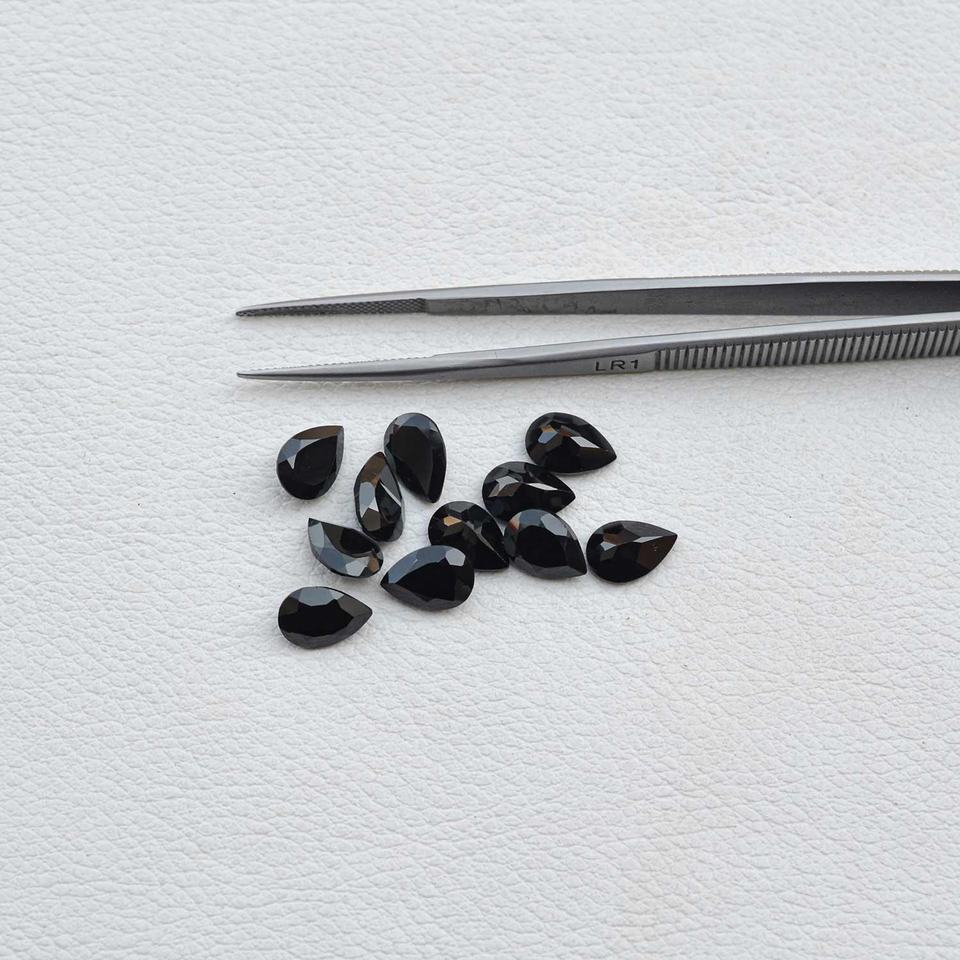 พลอยสปิเนลสีดำธรรมชาติทรงลูกแพร์เจียระไนขนาด 4 มม. 6 มม. 8 มม. 10 มม. สำหรับเครื่องประดับประจำเดือนสิงหาคม ราคาไม่แพง
