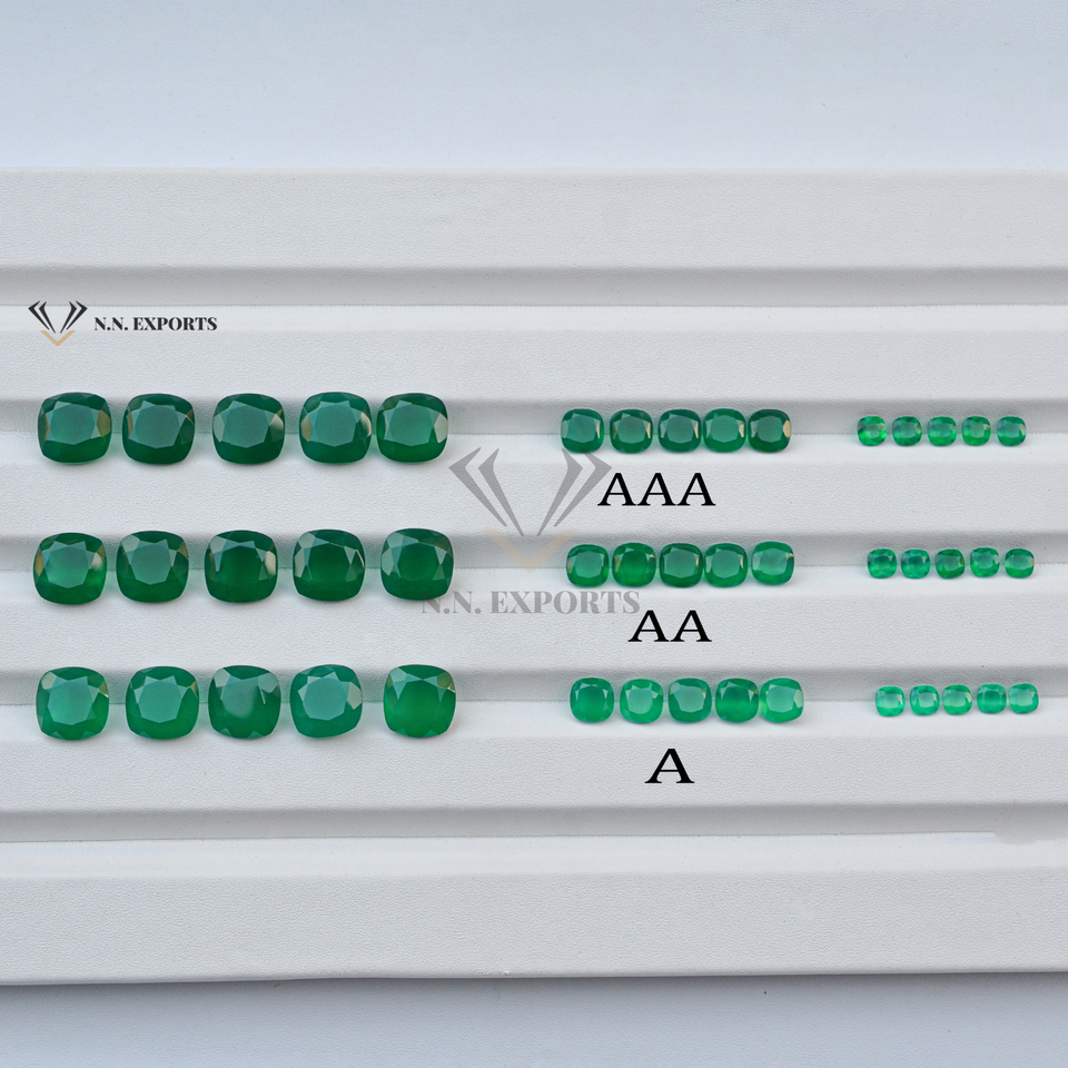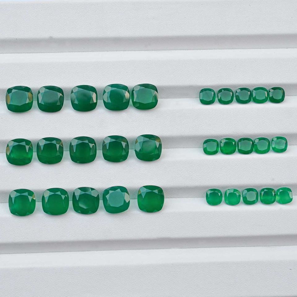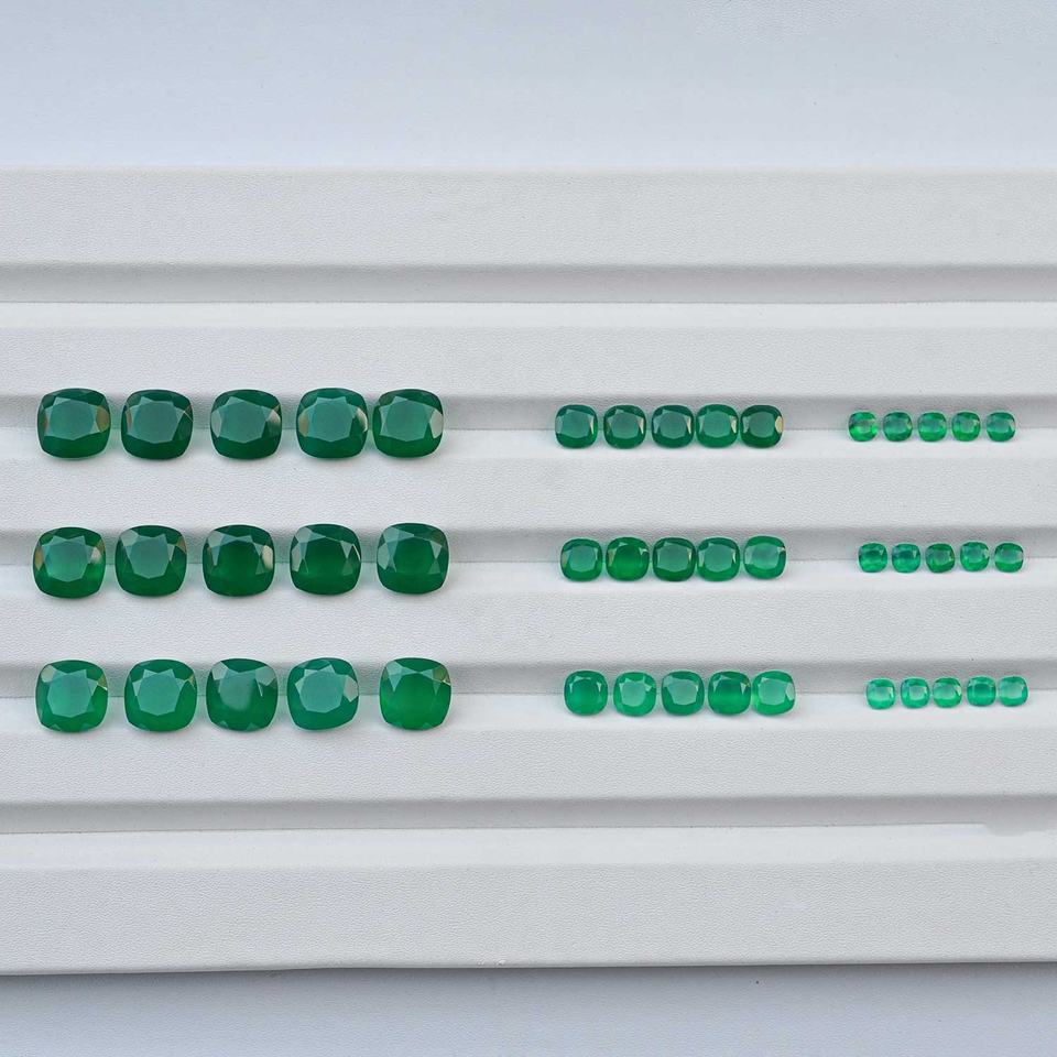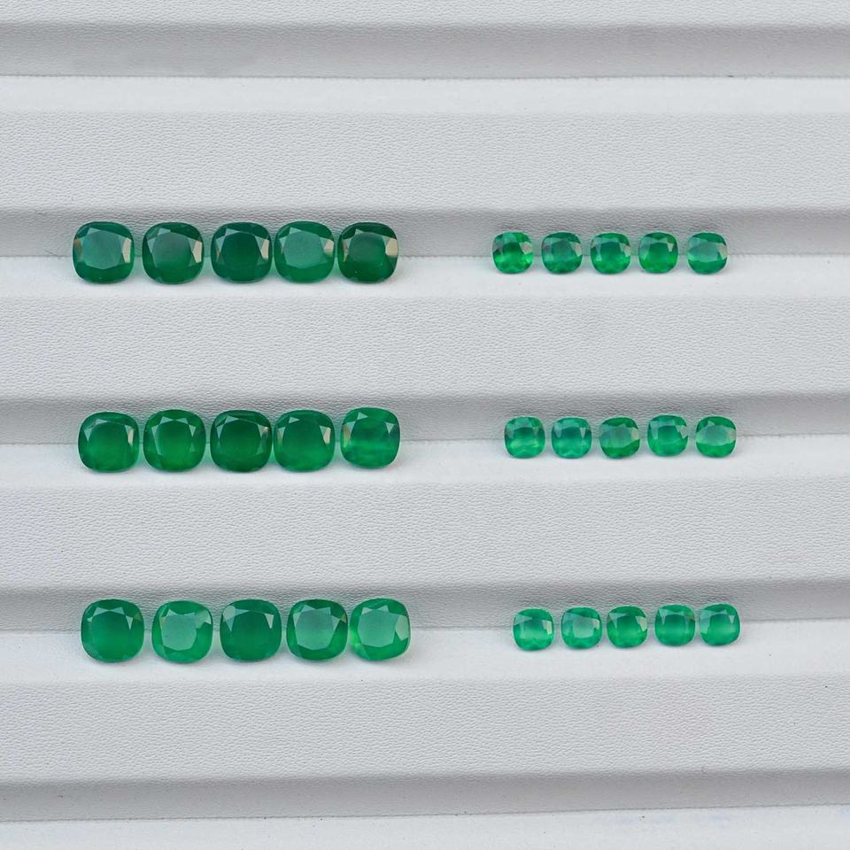 พลอยออนิกซ์สีเขียวธรรมชาติทรงคุชชั่นเจียระไนขนาด 4 มม. 6 มม. 8 มม. 10 มม. ขายดีที่สุด มีขนาดที่ปรับเทียบแล้ว จำหน่ายแบบเม็ด สามารถสั่งซื้อจำนวนมากได้