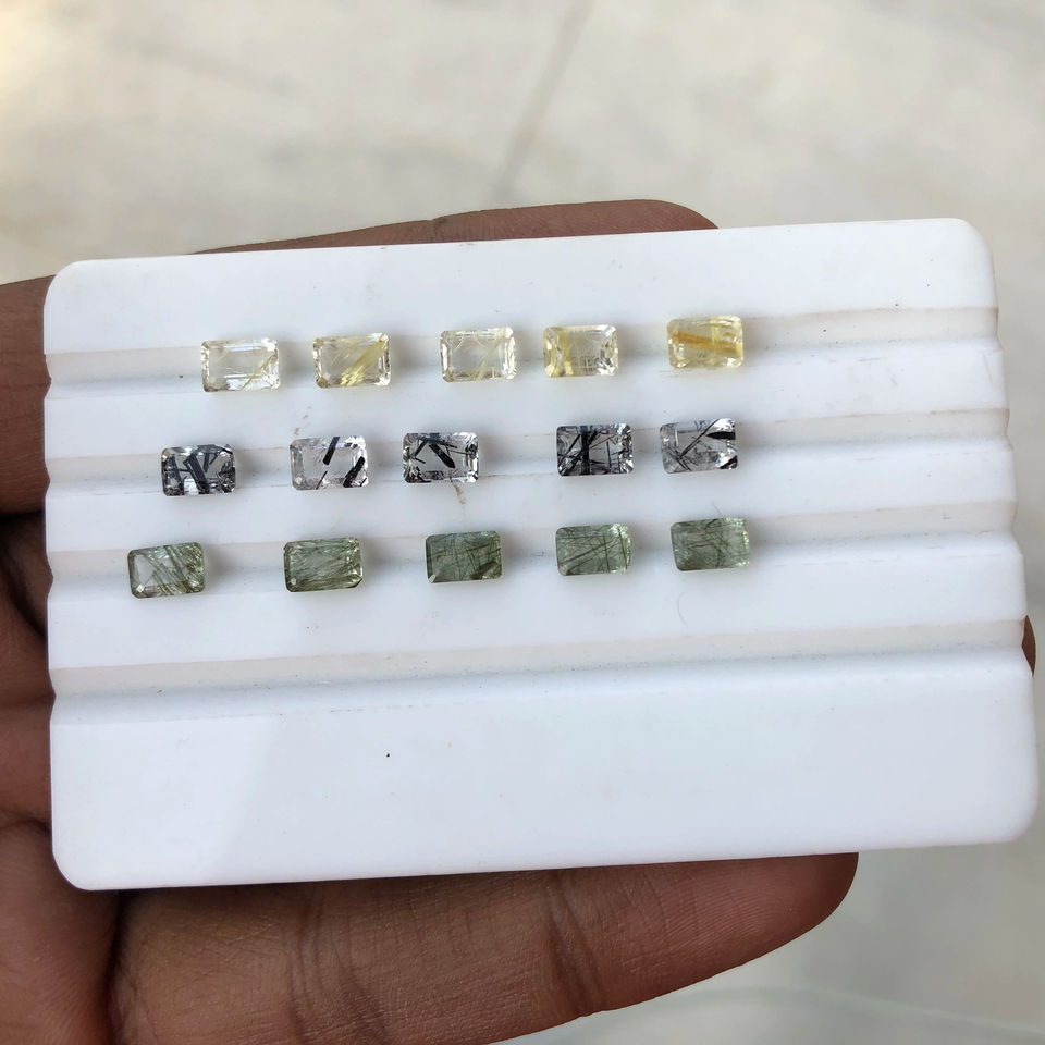 ชื่อผลิตภัณฑ์:พลอยควอตซ์เจียระไนทรงแปดเหลี่ยมสีเขียวทองธรรมชาติสีดำ