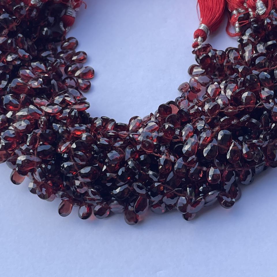 Natural Red Garnet Stone Pear Shape Faceted Briolette Beads