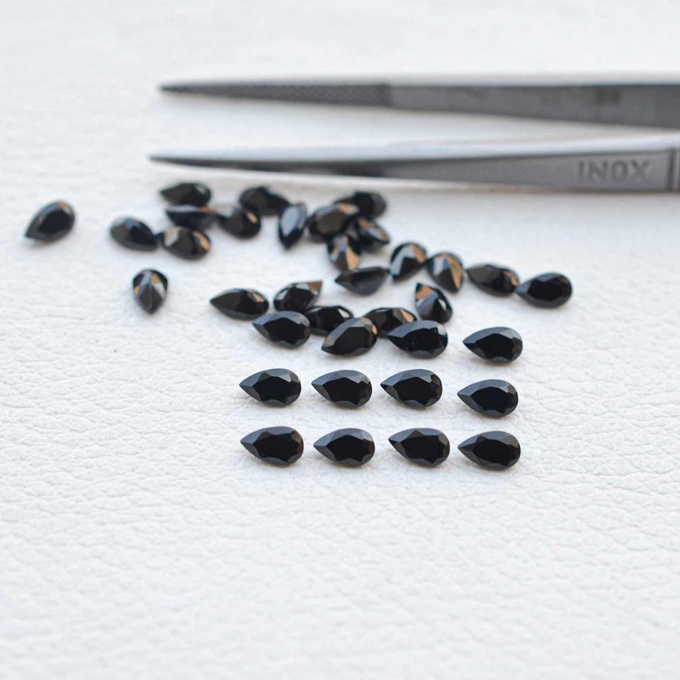 พลอยออนิกซ์สีดำธรรมชาติขนาด 4 มม. 6 มม. รูปทรงลูกแพร์เจียระไน สะอาดตา คุณภาพดี หินกึ่งมีค่า แบบเม็ดเดี่ยว จากผู้ผลิตและผู้จัดจำหน่ายที่ได้รับการรับรอง