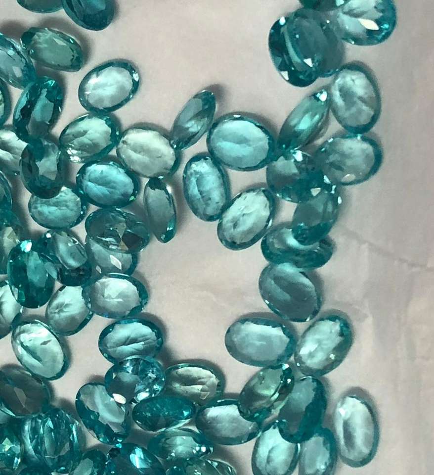 อัญมณีทรงวงรีขนาด4มม. 6มม. ตัดเป็นรูปวงรีทรงอะพาไทต์สีฟ้า