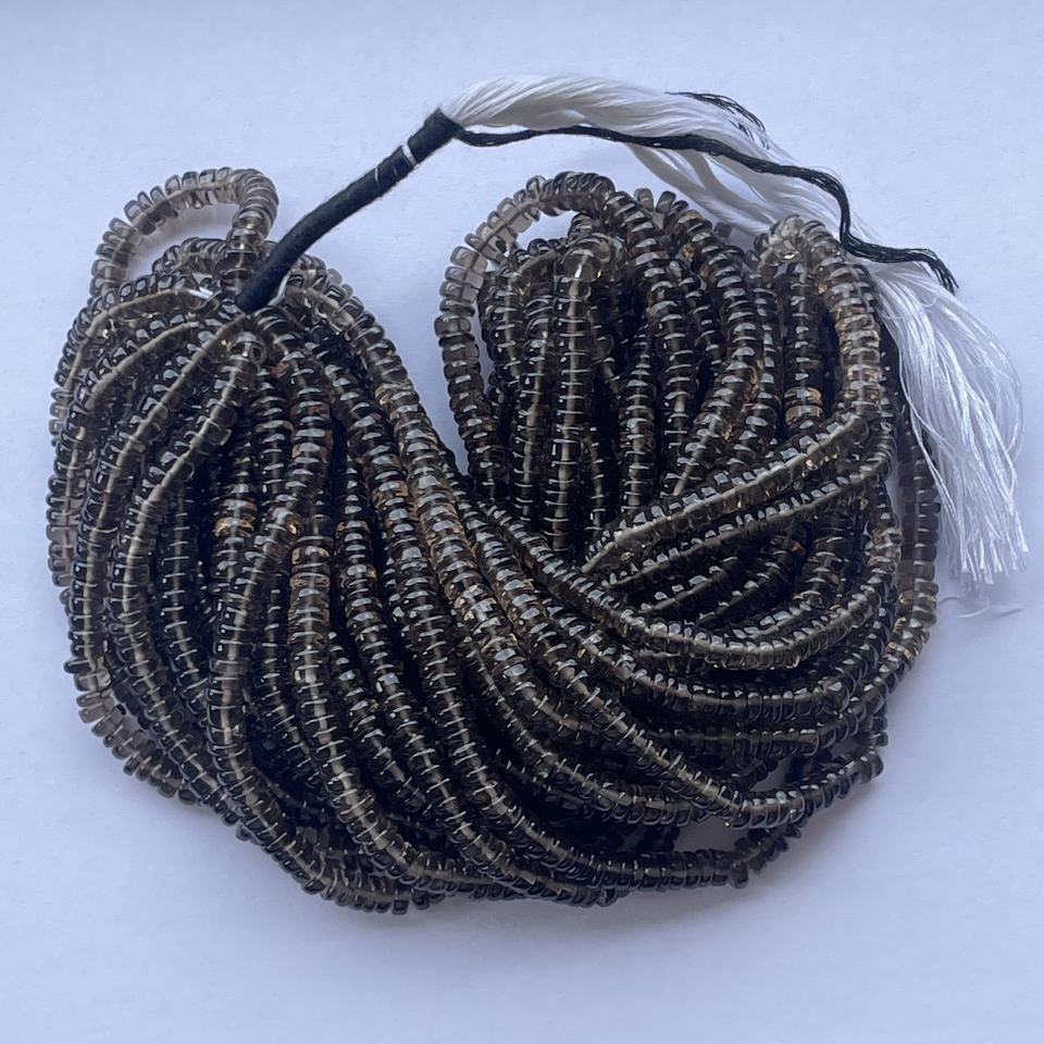 ชื่อสินค้า:ลูกปัดหินธรรมชาติสีน้ำตาลสโมคกี้ควอตซ์แบบเรียบ ขนาด 4 มม. และ 6 มม. รูปทรง Heishi