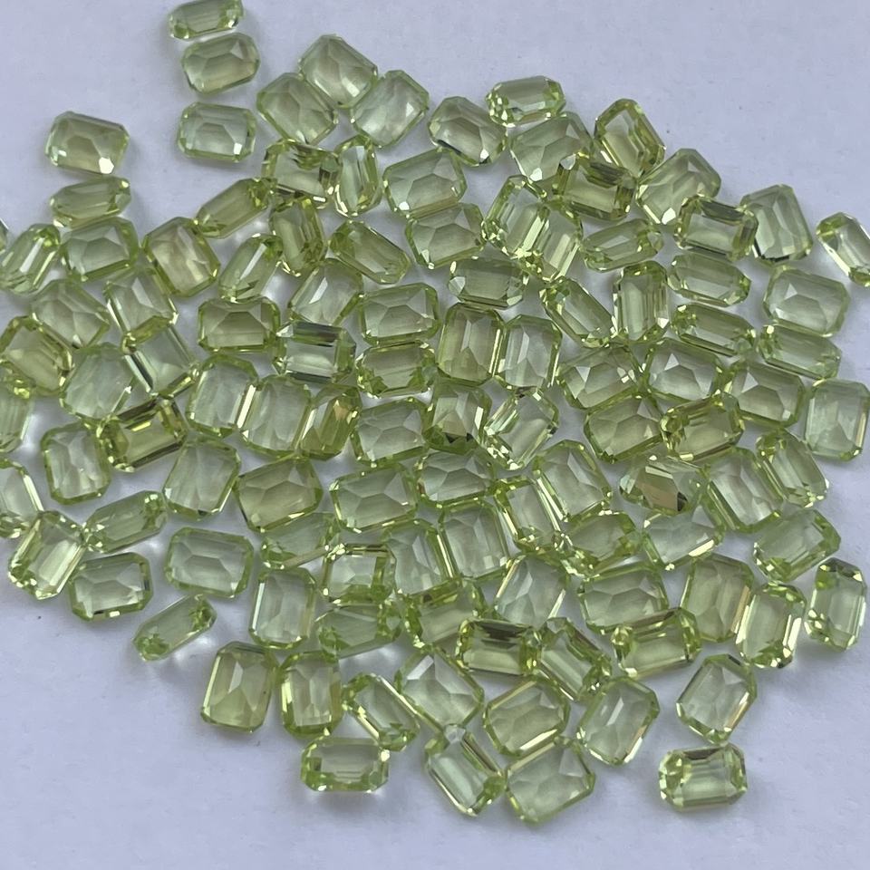 Natural Green Peridot Stone Faceted Emerald Cut Loose Gemstone