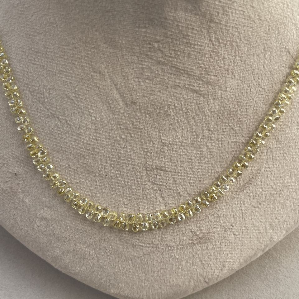 ลูกปัดเพชรเหลี่ยมเหลี่ยมทรงหยดน้ำ Briolette สีเหลืองอ่อน LC Fancy Color