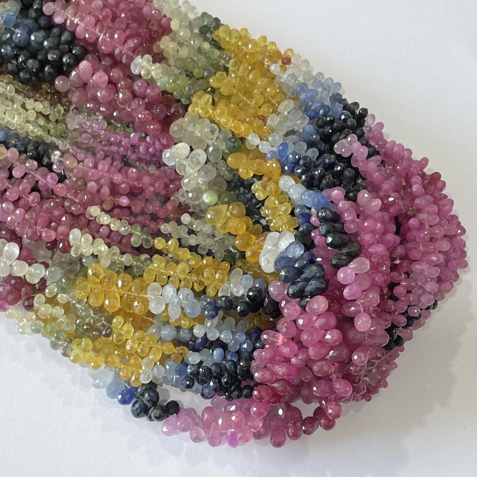 ชื่อสินค้า:ลูกปัดหยดน้ำแซฟไฟร์ธรรมชาติหลากสี ชมพู เหลือง เขียว ขนาด 4 มม. และ 6 มม. แบบเจียระไน