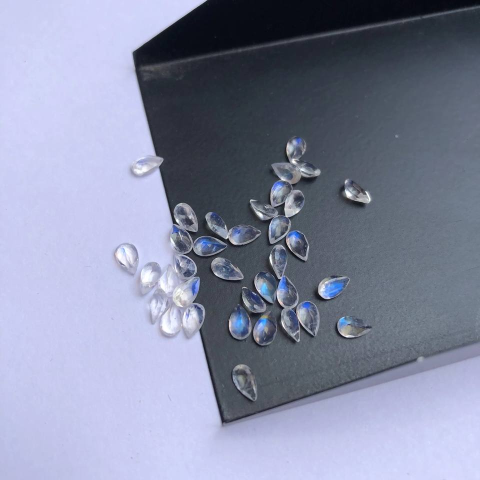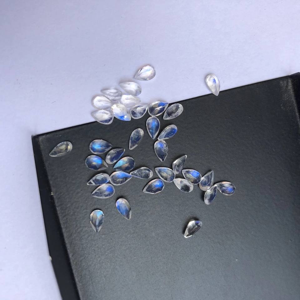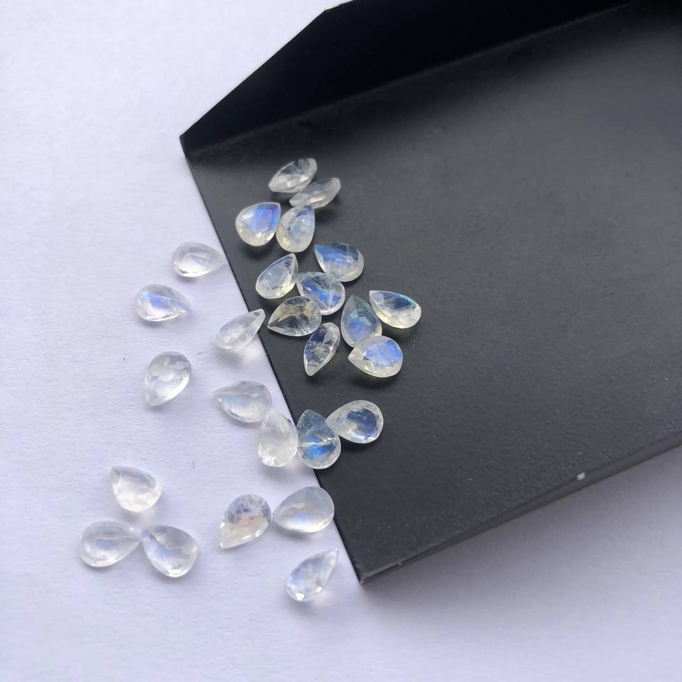 Natural Rainbow Moonstone Stone Faceted Pear Cut Gemstone