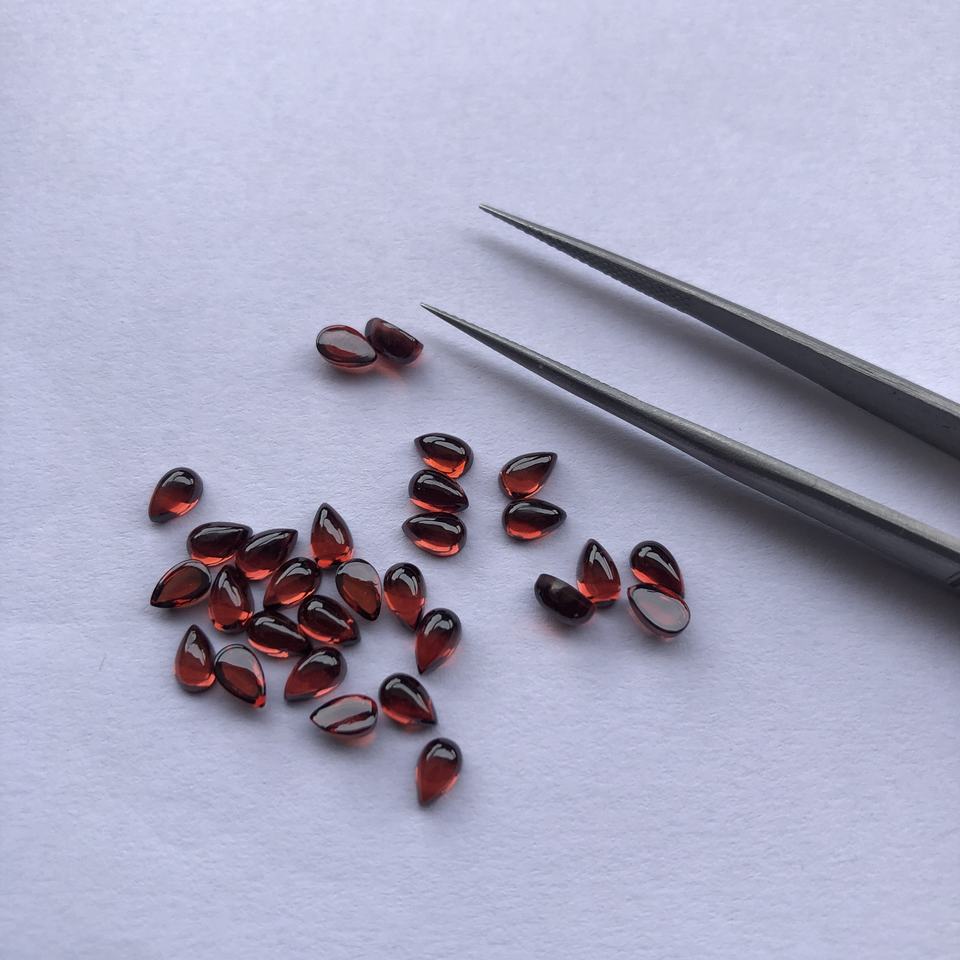 ลูกแพร์โกเมนสีแดงธรรมชาติขนาด4มม. 6มม. ปรับเทียบได้อัญมณีอัญมณีทรงหลวมข้อเสนอจากโรงงานอย่างใกล้ชิด