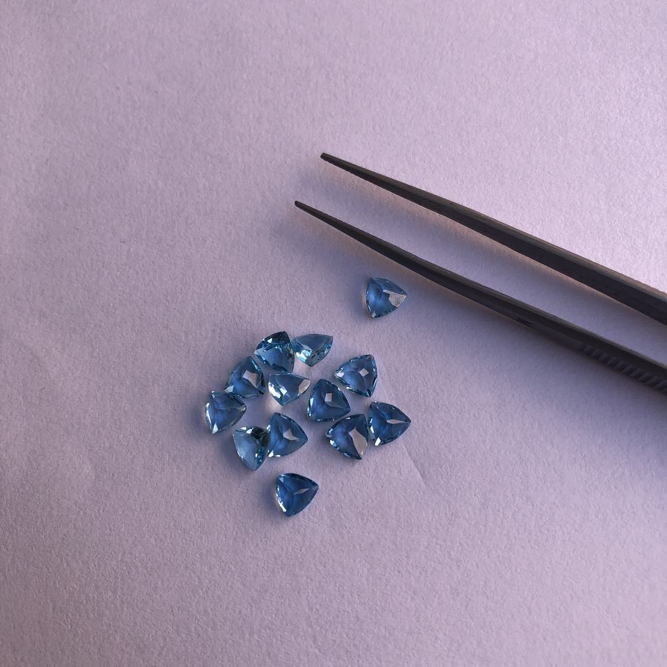 พลอยบลูโทแพซธรรมชาติจากสวิส ขนาด 4 มม. 6 มม. ทรงทริลเลียนเจียระไน สำหรับทำเครื่องประดับ จากผู้ผลิต