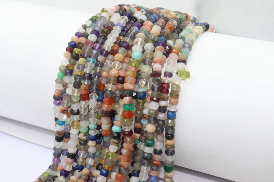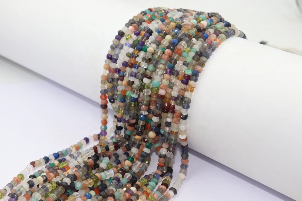 ลูกปัดดิสโก้หลายเหลี่ยมเพชรพลอยธรรมชาติขนาด4มม. สำหรับทำเครื่องประดับลูกปัดดิสโก้หลากสี