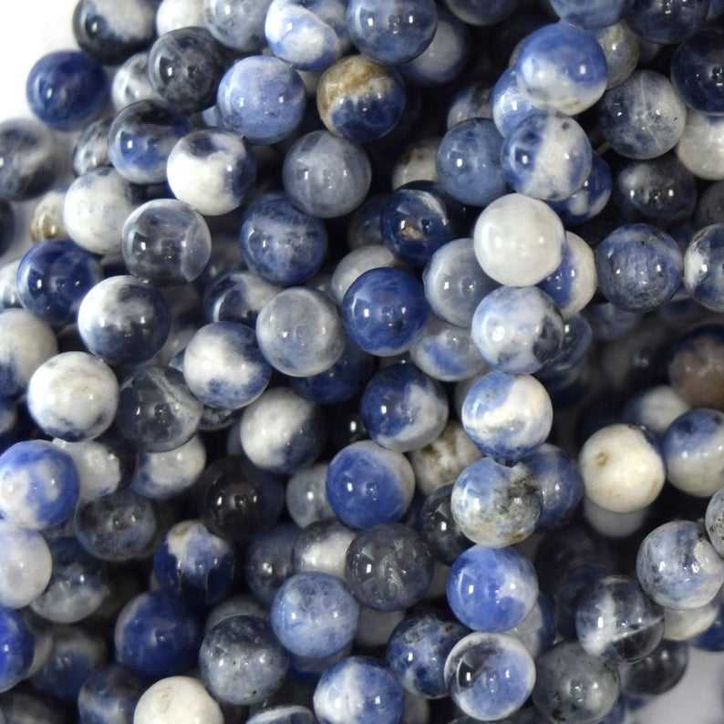 ชื่อผลิตภัณฑ์:ลูกปัดอัญมณีทรงกลมเรียบโซดาไลต์ธรรมชาติ