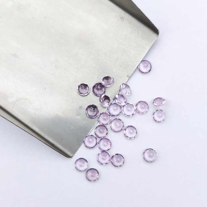พลอยอะมีทิสต์สีชมพูโรสเดอฟรองซ์ธรรมชาติขนาด 4 มม. รูปทรงกลมเจียระไน ขายส่ง สำหรับทำเครื่องประดับและบำบัดรักษา