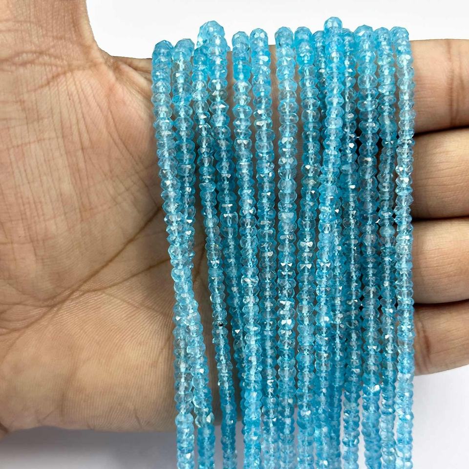 4mm Natural Sky Blue Topaz Faceted Rondelle Shape Loose Gemstones Beads Strand Unique Handmade Beads Jewelry Regular Supplier