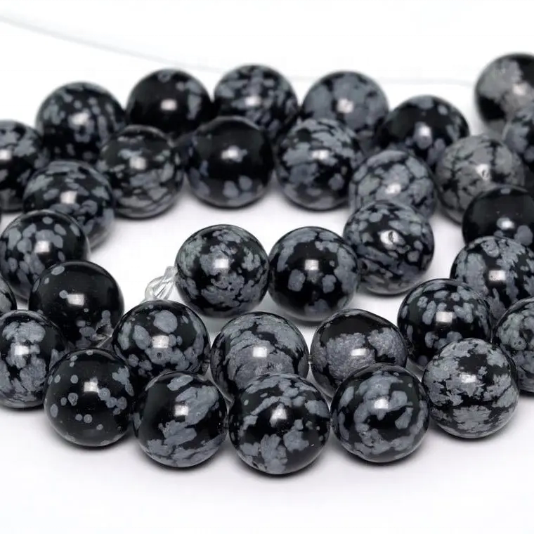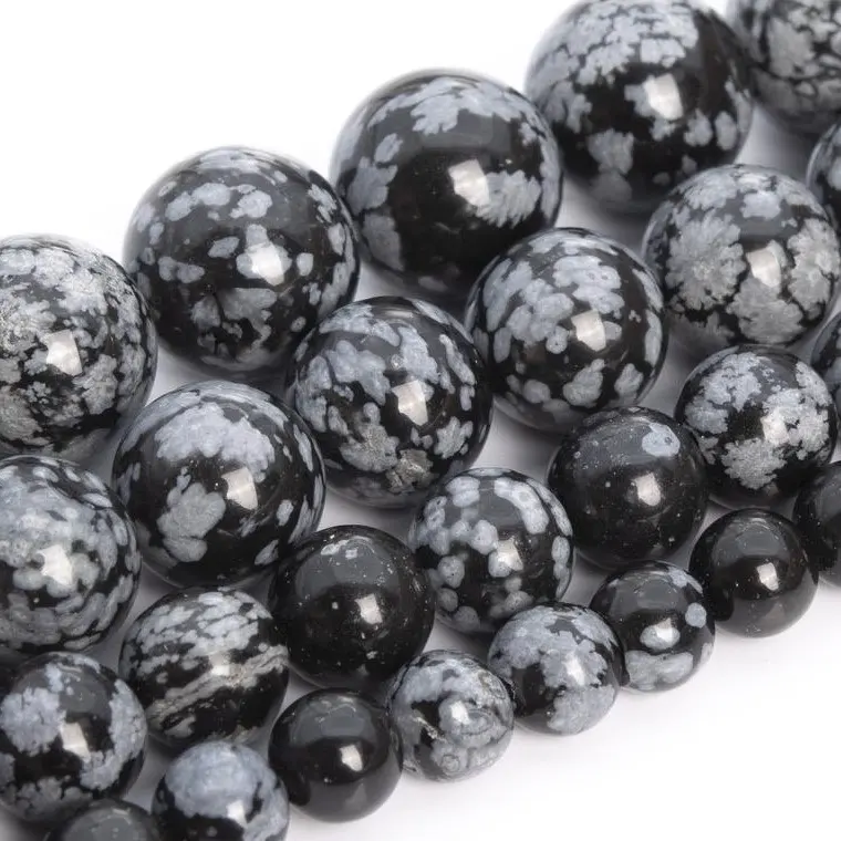 ลูกปัดหินอัญมณีทรงกลมเรียบลายเกล็ดหิมะธรรมชาติขนาด4มม. ดีไซน์ทันสมัย