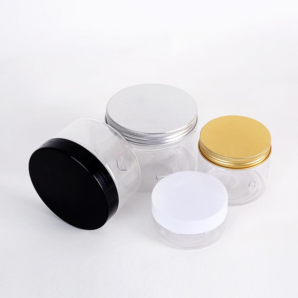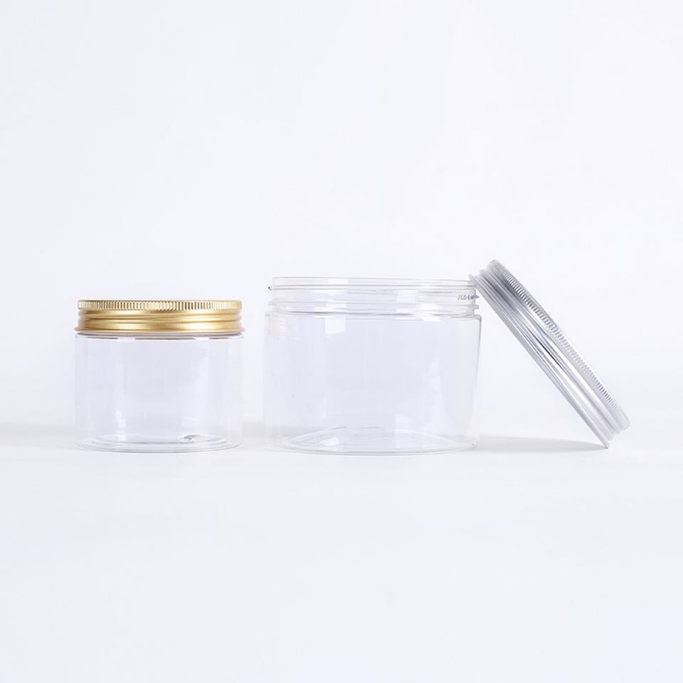 ขวดพลาสติกใส PET ขนาด 4 ออนซ์ 8 ออนซ์ 16 ออนซ์ 32 ออนซ์ 120 มล. 250 มล. 500 มล. 1000 มล. พร้อมฝาอลูมิเนียมสีทอง สีเงิน ฝาสีดำ สีน้ำตาล และฝาใส