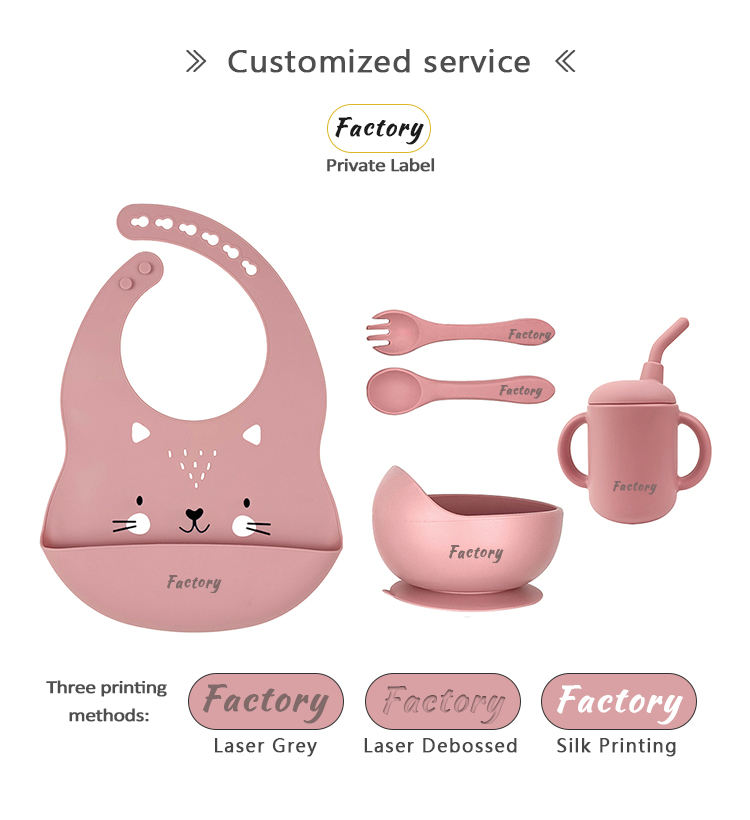 ชุดภาชนะอาหารสำหรับเด็กทารกทำจากซิลิโคน4ชิ้นพร้อมช้อนชุดป้อนอาหารปราศจากสาร BPA พร้อมถ้วยจิบโลโก้ตามสั่ง