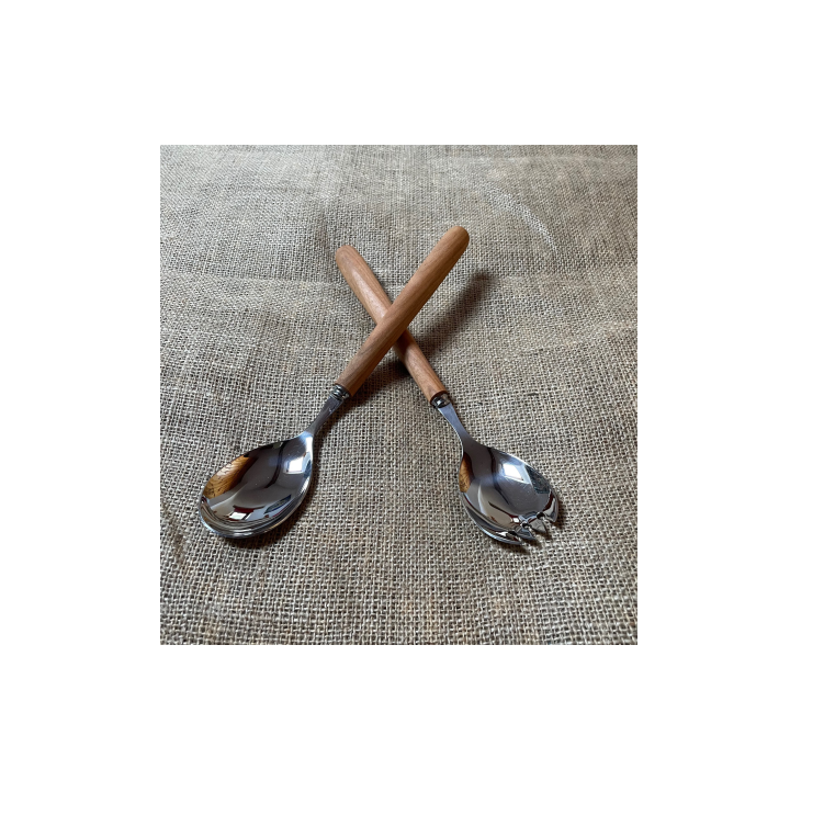 4 ชิ้นสแตนเลสช้อนสลัดสไตล์ช้อนสลัดสีดําช้อนกวนสลัดเสิร์ฟสําหรับด้ามไม้