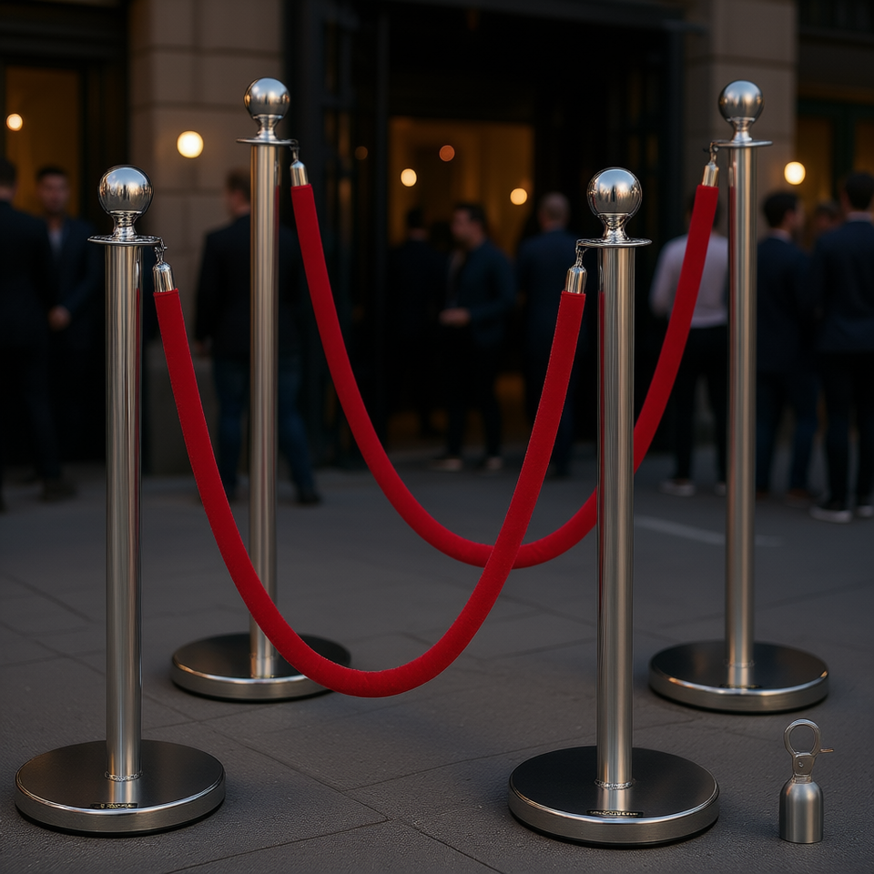 เสาเหล็กสแตนเลส Vevor 4 ชิ้น ขนาด 38 นิ้ว พร้อมเชือกกำมะหยี่สีแดง สำหรับกั้นเส้นทาง จัดการฝูงชน ใช้ในงานปาร์ตี้หรือกั้นการจราจร