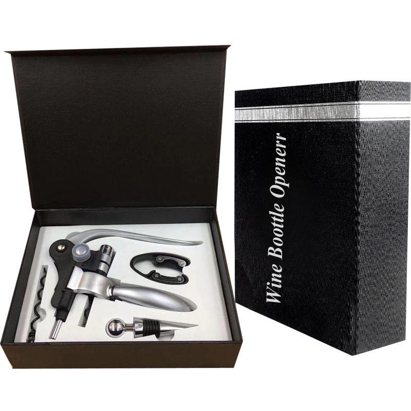 ชุดที่เปิดขวดไวน์กล่องของขวัญกระดาษสีดำ 4 ชิ้น