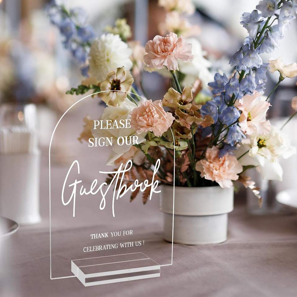 ป้ายแต่งงานอะคริลิคใส4ชิ้นสำหรับพิธีและต้อนรับ