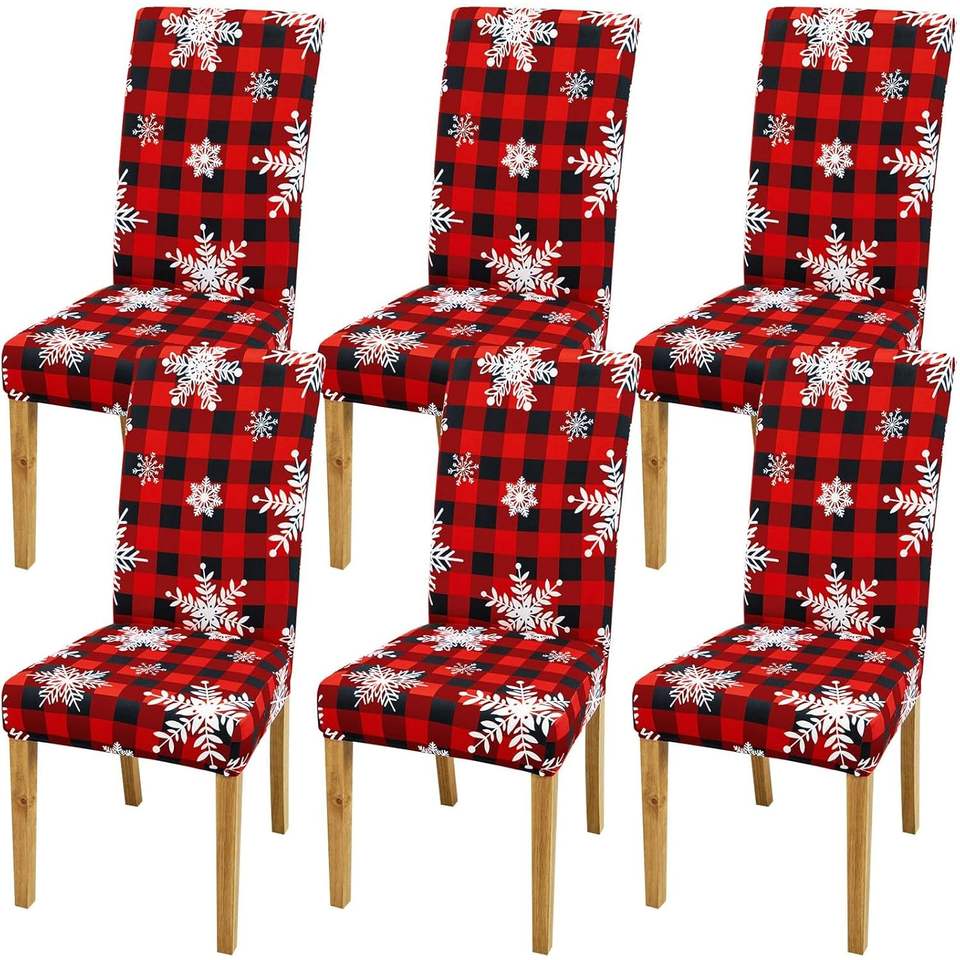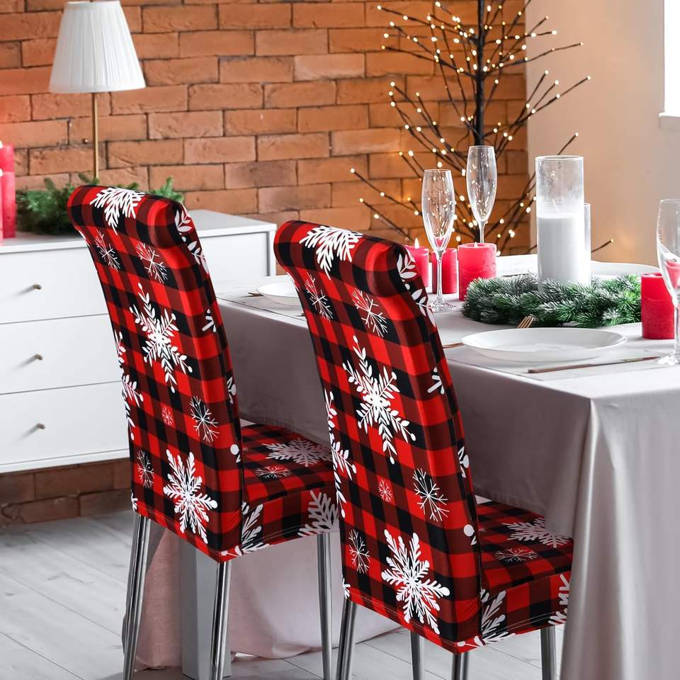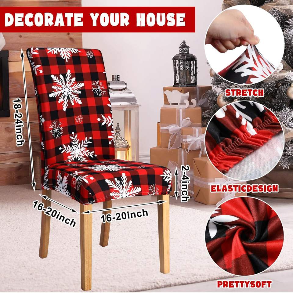 ชุดคลุมเก้าอี้คริสต์มาสน้ำหนักเบา4ชิ้นพิมพ์ลายเกล็ดหิมะยืดได้ถอดซักง่ายอุปกรณ์ป้องกันเก้าอี้รับประทานอาหารคริสต์มาสที่สมบูรณ์แบบ