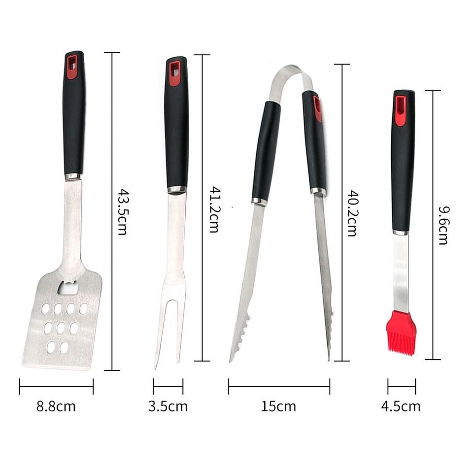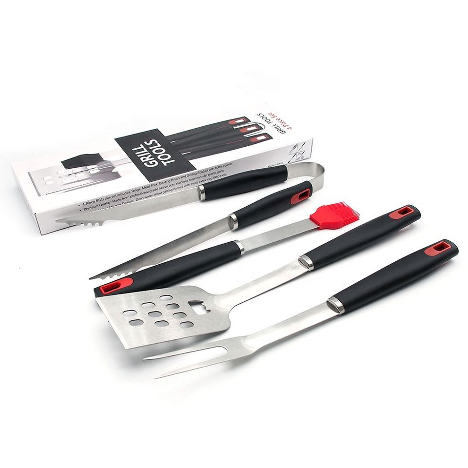 ชุดเครื่องมือบาร์บีคิวสแตนเลสทันสมัย 4 ชิ้น พร้อมด้ามจับพลาสติก สำหรับตั้งแคมป์และทำอาหารกลางแจ้ง