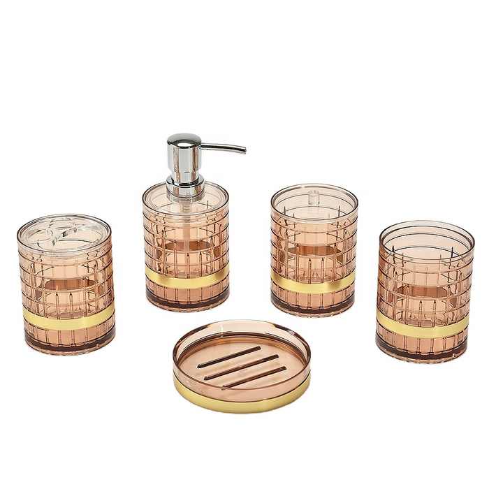 4ชิ้นพลาสติกเป็นอะคริลิโปร่งใสชุดอุปกรณ์ห้องน้ำ