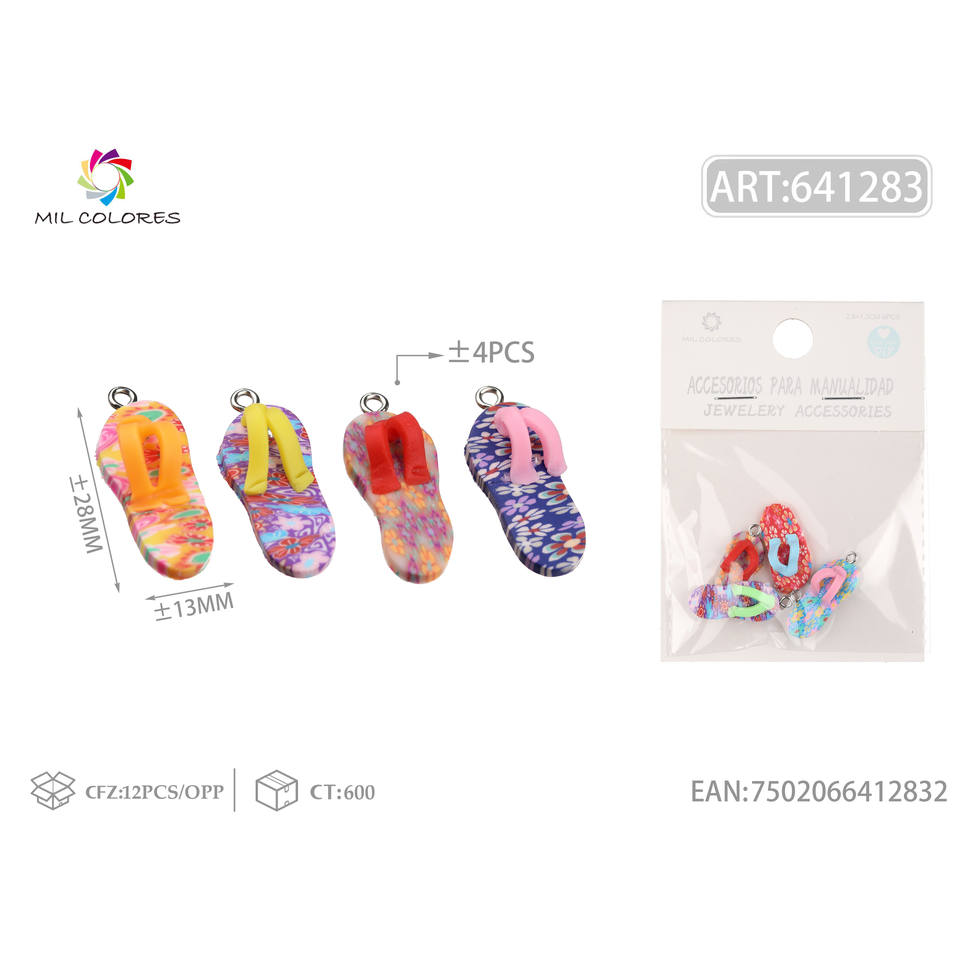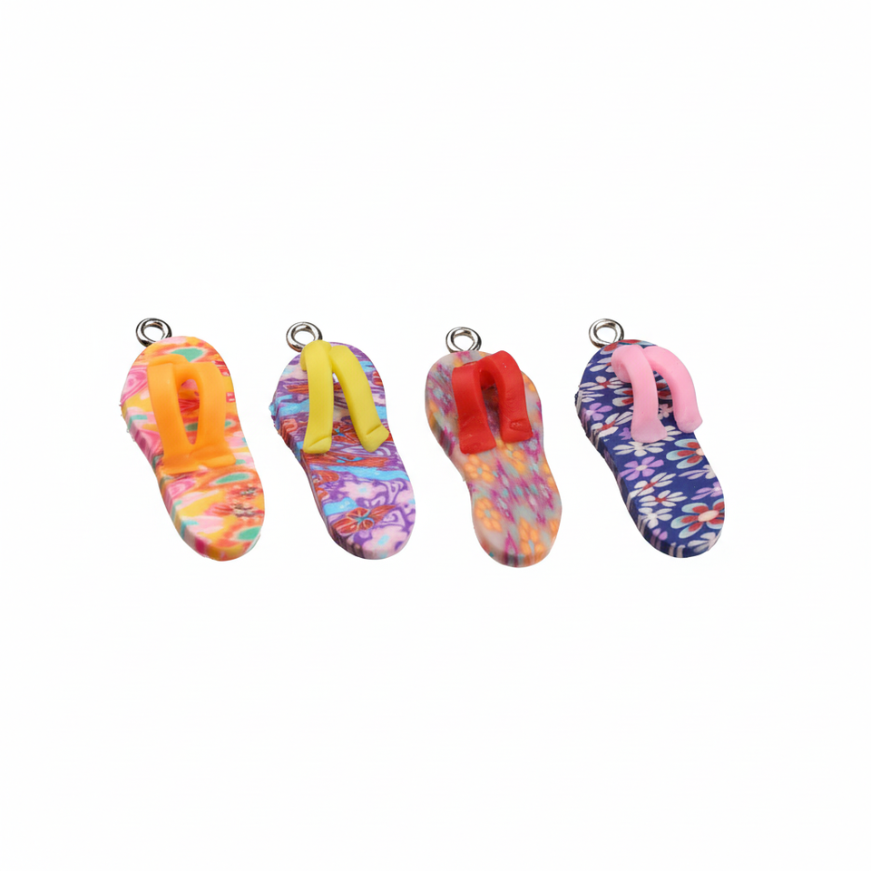 จี้รองเท้าแตะดินโพลิเมอร์4ชิ้นขนาด2.8*1.3ซม. สำหรับการค้นหาเครื่องประดับและส่วนประกอบ