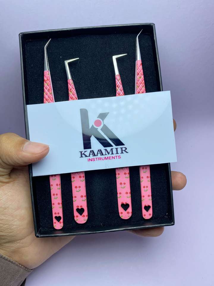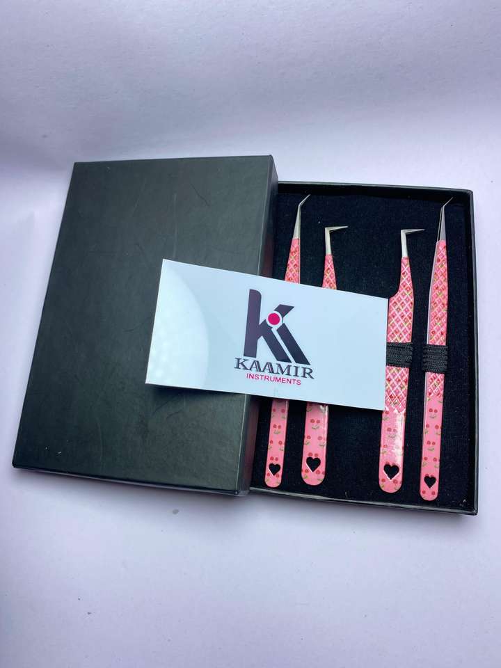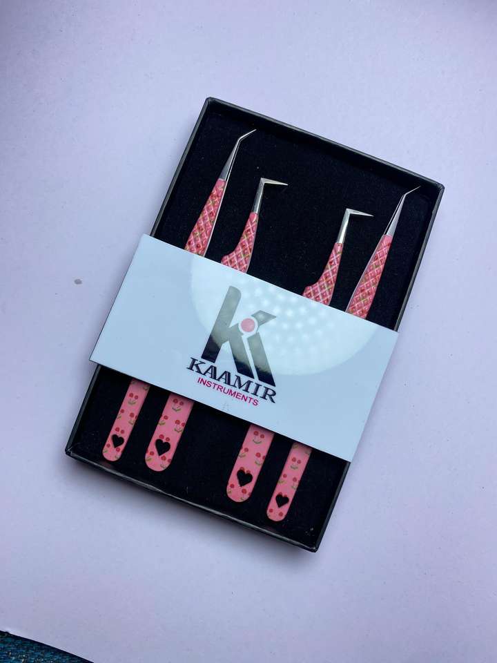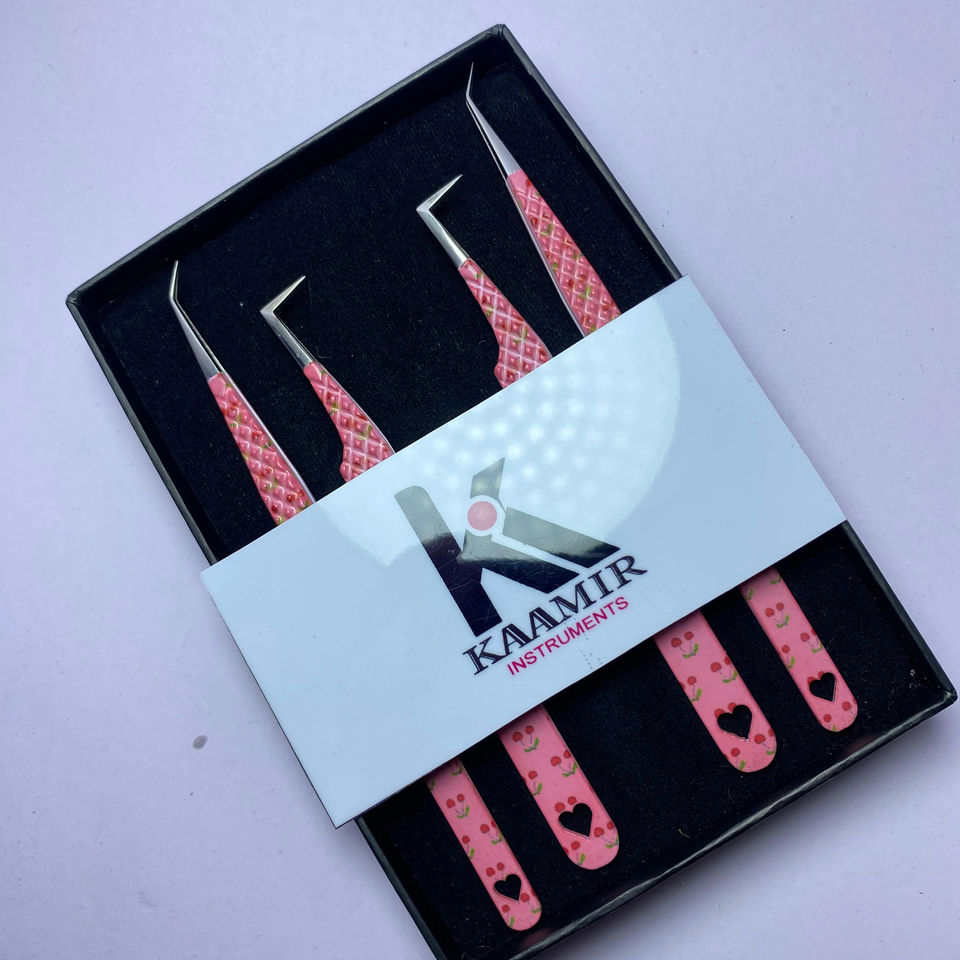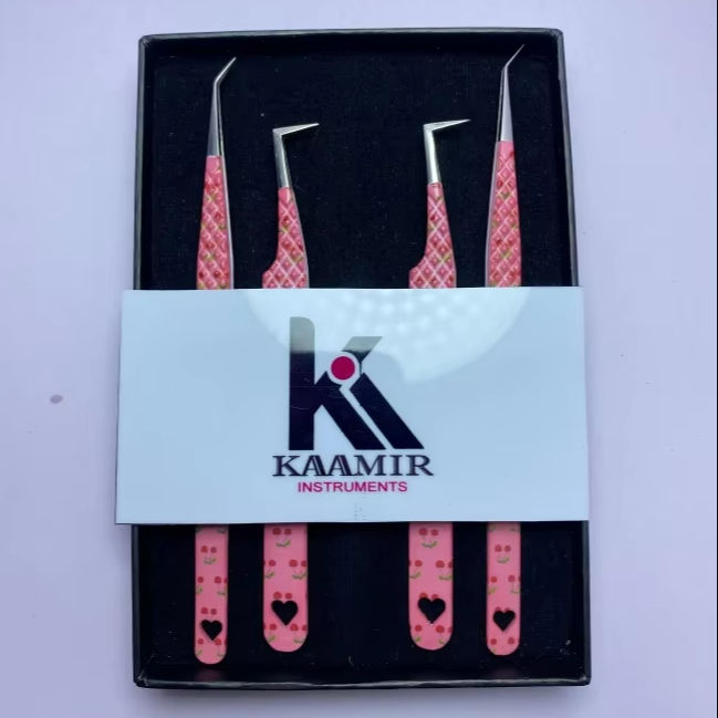 ชุดแหนบต่อขนตาสแตนเลสแบบมืออาชีพ4ชิ้นชุดเครื่องมือแต่งขนตาพิมพ์ลายหัวใจ