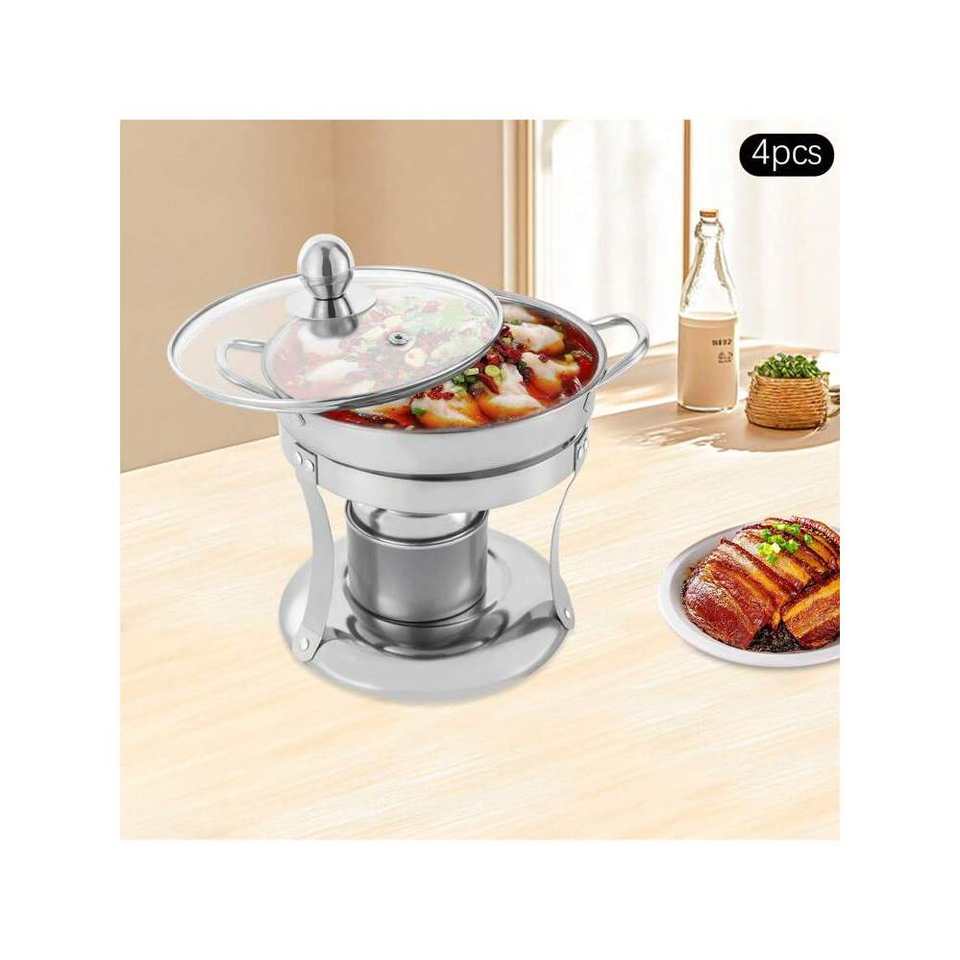 ถาดอุ่นอาหารสแตนเลสสำหรับบุฟเฟ่ต์4ชิ้นสีเงินพร้อมถาดอุ่นอาหาร