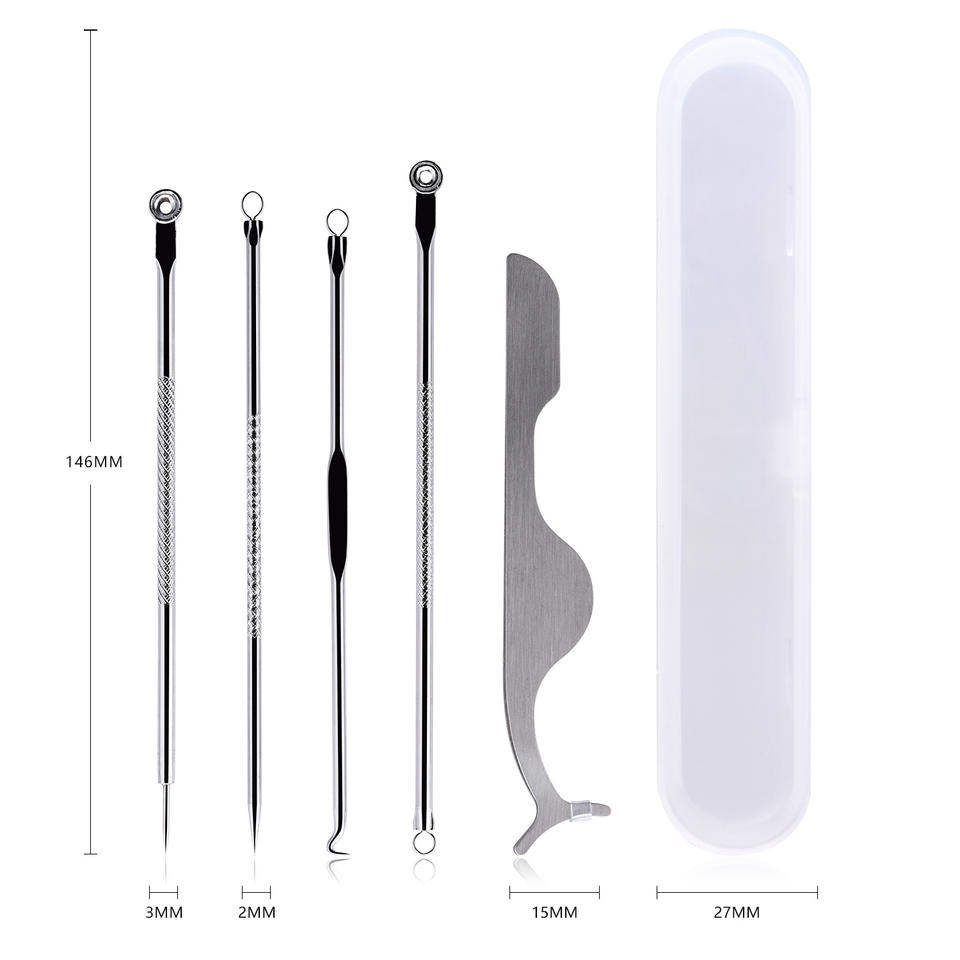 4pcs Silver Stainless Steel Acne Needle Set with False Eyelash Beauty Tool for Mask Use