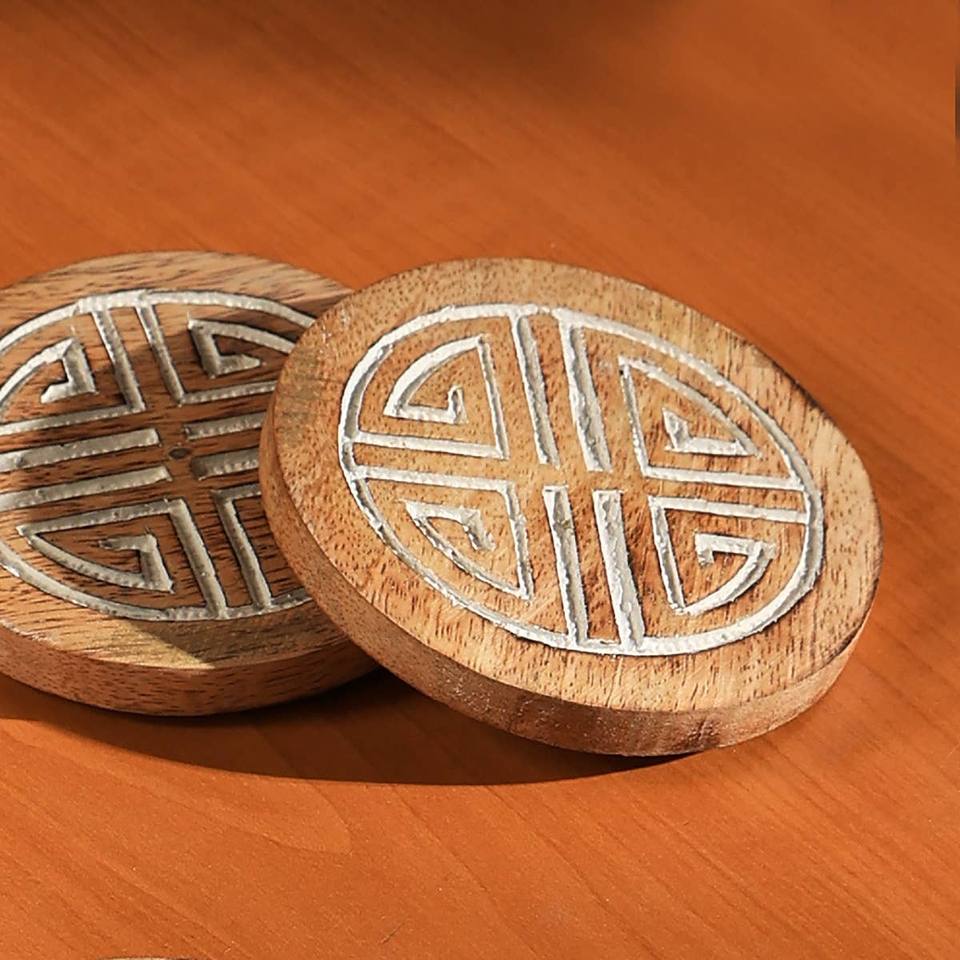 ที่รองแก้วไม้ 4 ชิ้นสำหรับใช้ในบ้านและสำนักงาน ของใช้บนโต๊ะอาหารที่จำเป็นสำหรับการปกป้องเฟอร์นิเจอร์และพื้นผิวการทำงาน