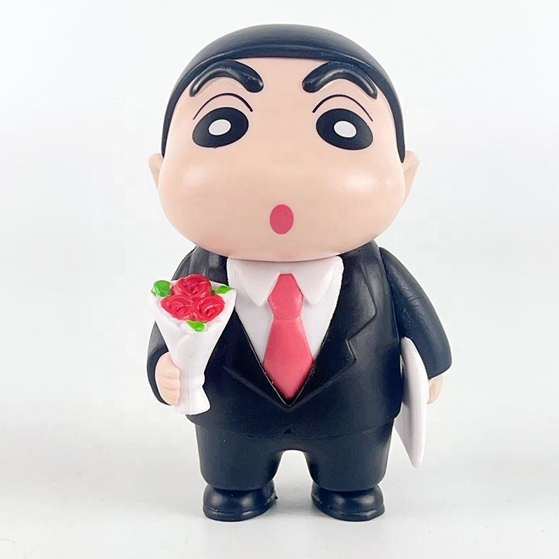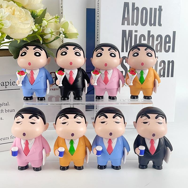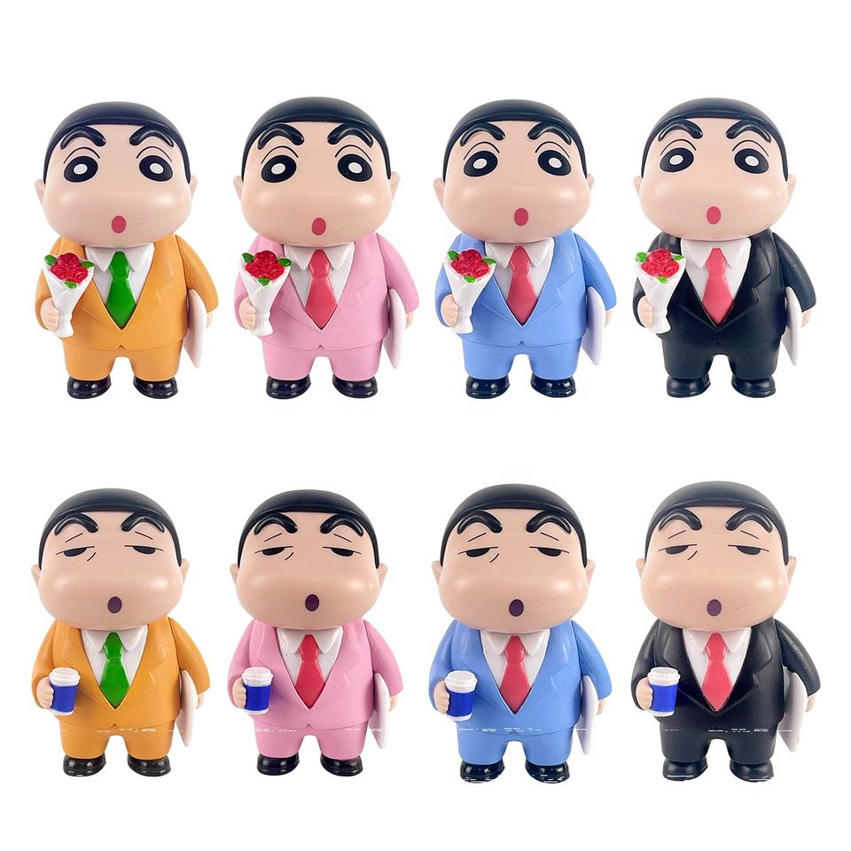 ชุดสูทธุรกิจลายการ์ตูนตลก4ชิ้น/เซ็ตถ้วยกาแฟแบบช่อดอกไม้ใช้ทำงานกล่องดินสอสีชินจังหุ่นแอ็คชั่นฟิกเกอร์คนตาบอด