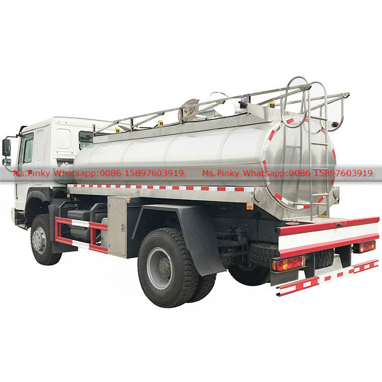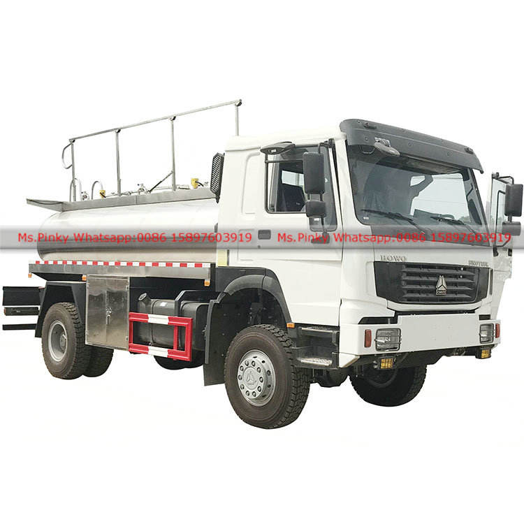 4X4 HOWO รถบรรทุกนมดื่มเต็มล้อพร้อมถังสแตนเลส SS304-2B ถังเกรดอาหารสำหรับการขนส่งนมสด
