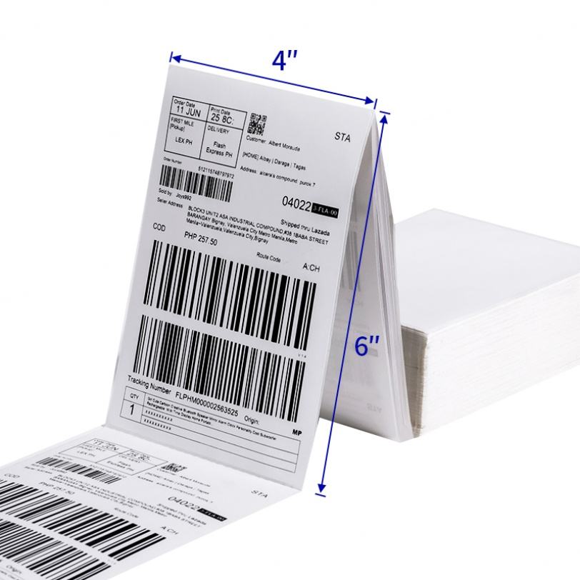 ฉลากความร้อนโดยตรงขนาด 4x6 นิ้ว, ฉลากพับแบบพัดสำหรับเครื่องพิมพ์ความร้อน 500 ฉลากต่อชุด