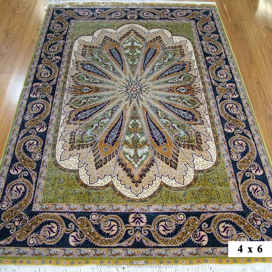 4x6 Turkey Home Decor Handmade Green Turkish Silk Carpets Floor Area Carpet Price for Sale