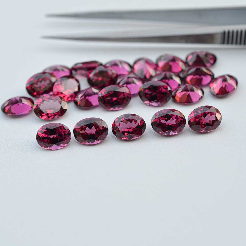 พลอยแกรนเนตอัมบาลไลท์ธรรมชาติขนาด 4x6 มม. รูปทรงวงรีเหลี่ยมเพชรพลอย สีชมพูอมแดง สำหรับทำเครื่องประดับแฮนด์เมด ราคาโรงงานขายส่ง