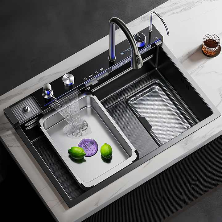 อ่างล้างจานสแตนเลส 304 หนา 5.0 มม. แบบอ่างเดี่ยวขนาดใหญ่ พร้อมตะแกรงกรองเศษอาหาร อ่างล้างจานสำหรับใช้ในครัวเรือน