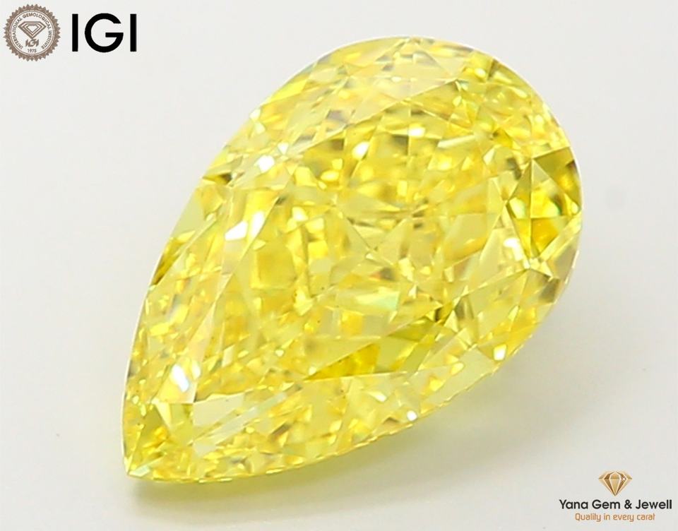 เพชร CVD 5.00 กะรัต รูปทรงลูกแพร์ พร้อมใบรับรอง IGI สำหรับทำเครื่องประดับ ความใส VS1 สีเหลืองแฟนซีสดใส