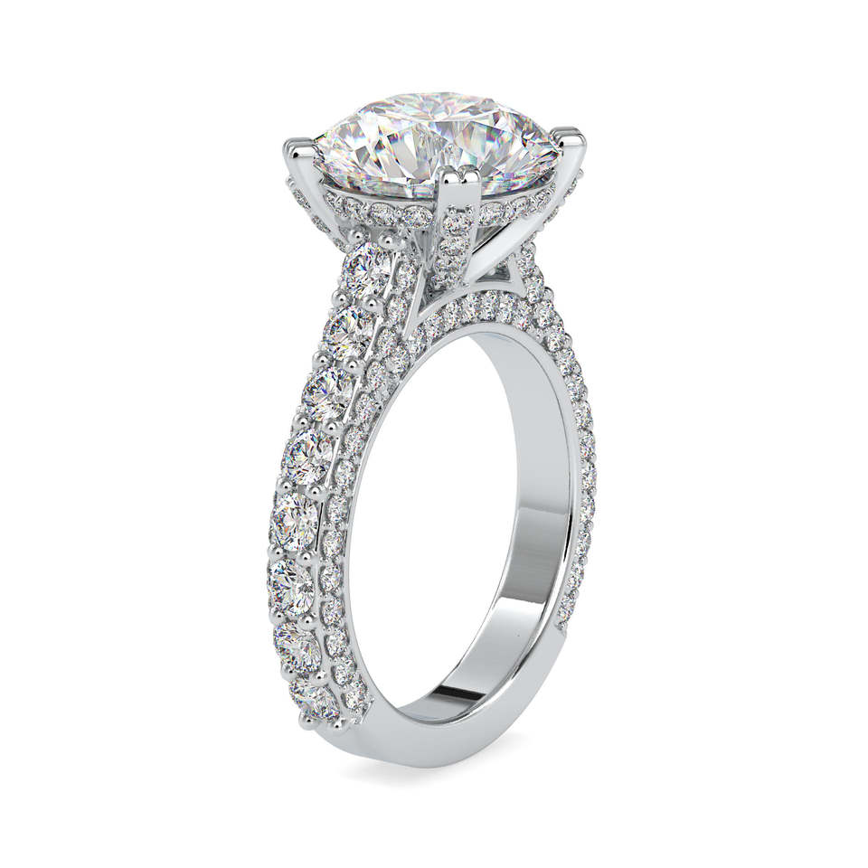 แหวนเพชร5.00กะรัตทรงกลมสำหรับใส่ในห้องแล็บแหวนชุบโรเดียมสำหรับงานหมั้นหมายทองคำขาว14K