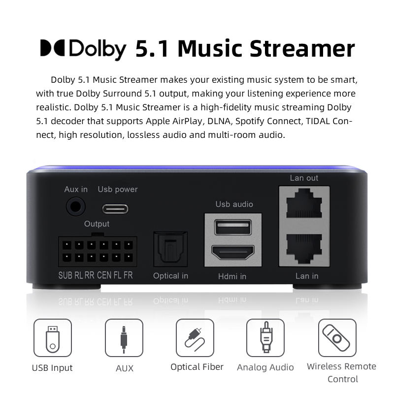 เครื่องถอดรหัสเสียง 5.1 Dolby Atmos HD Audio Streamer สำหรับระบบโฮมเธียเตอร์ ระบบลำโพงโฮมซีเนม่า เสียงเซอร์ราวด์ไร้สาย