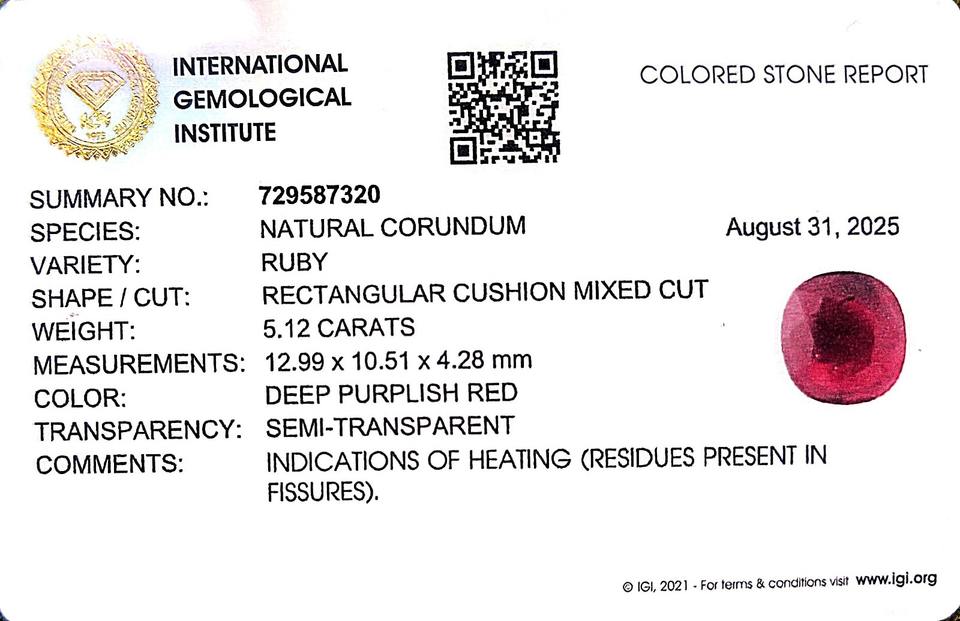 พลอยทับทิมธรรมชาติพม่าทรงคุชชั่น 5.12 กะรัต RBHO-8