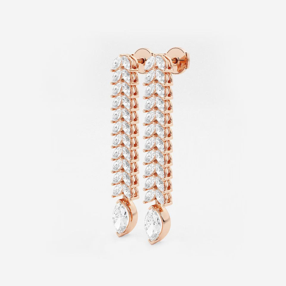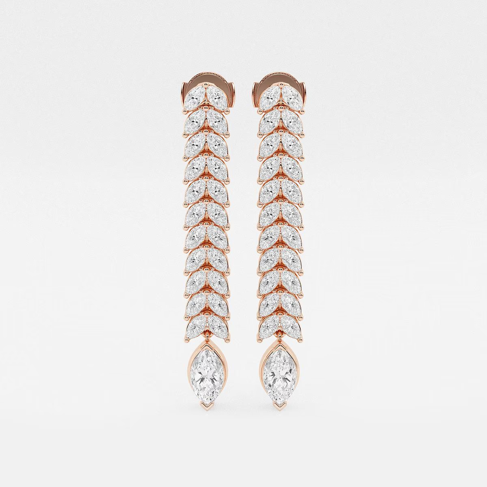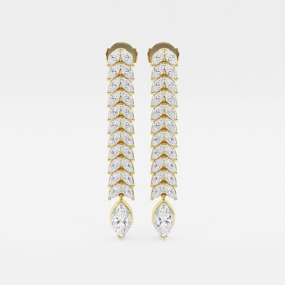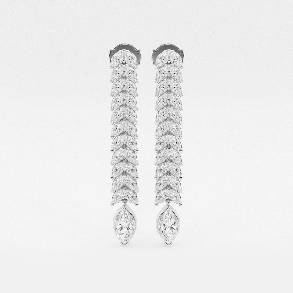 ต่างหูเพชรทรงมาร์คีส์ 5 1_2 กะรัต เพชรเลี้ยงในห้องปฏิบัติการ แบบสองแถว ดีไซน์ห้อยระย้า เครื่องประดับแฟชั่นสุดหรูสำหรับผู้หญิง ต่างหูห่วงหรูหรา