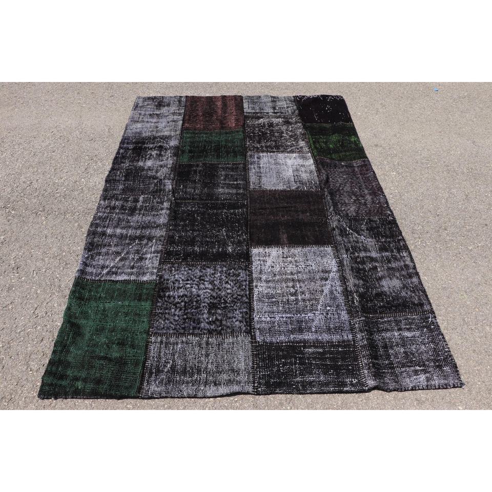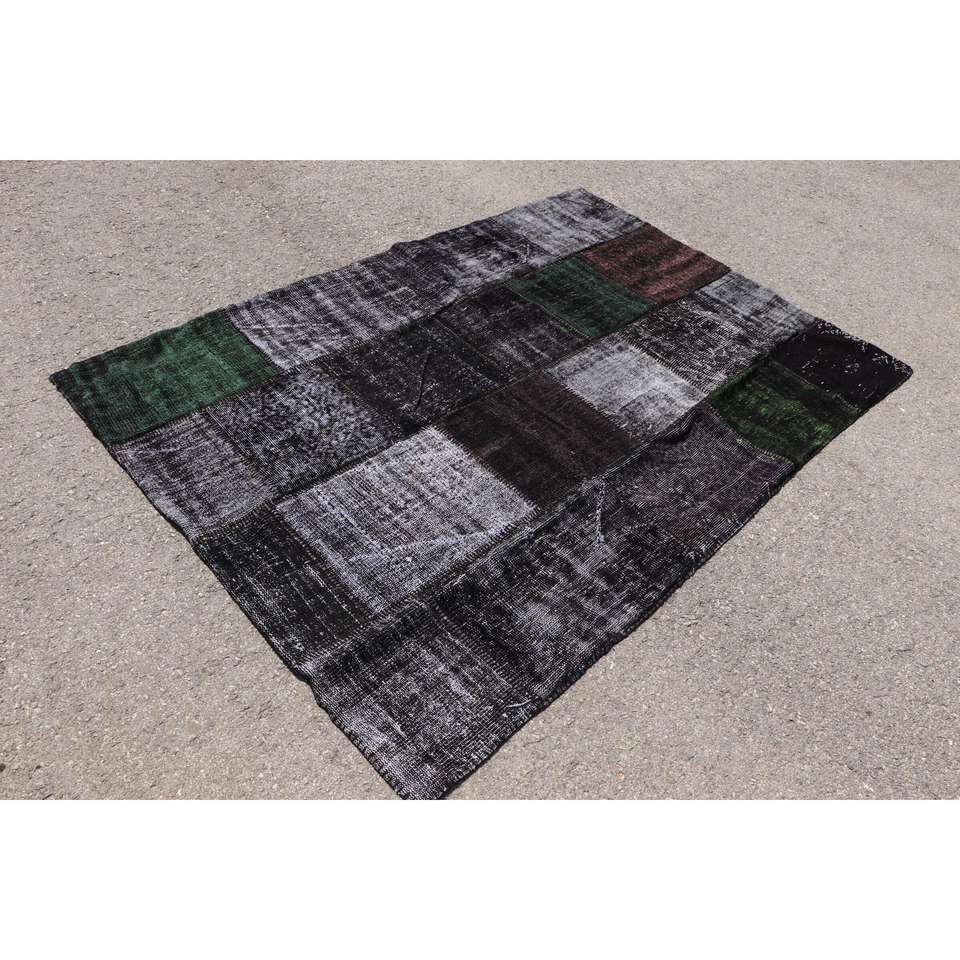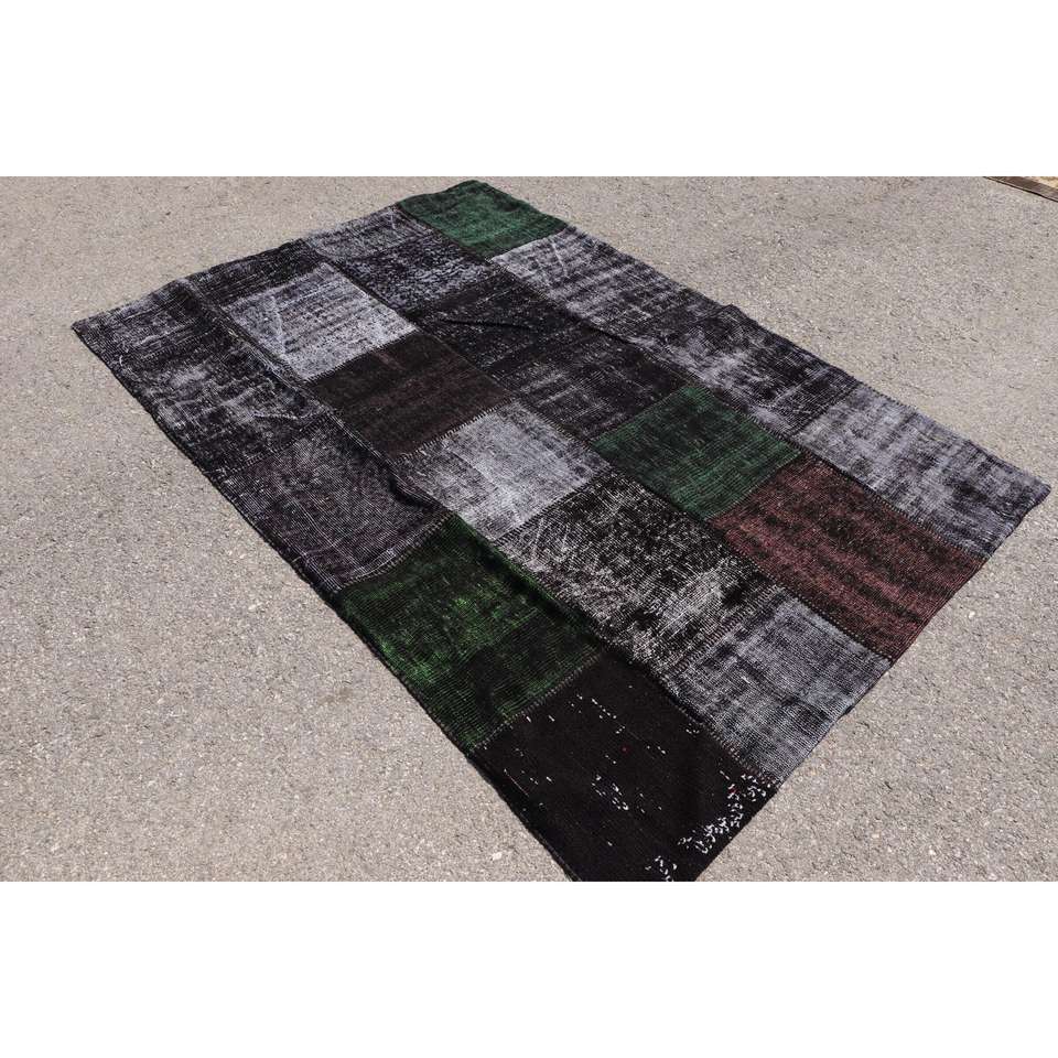 พรมขนาด 5.1x7.5 ฟุต, พรมวินเทจตุรกี, พรมลายเส้นนามธรรมสีดำ