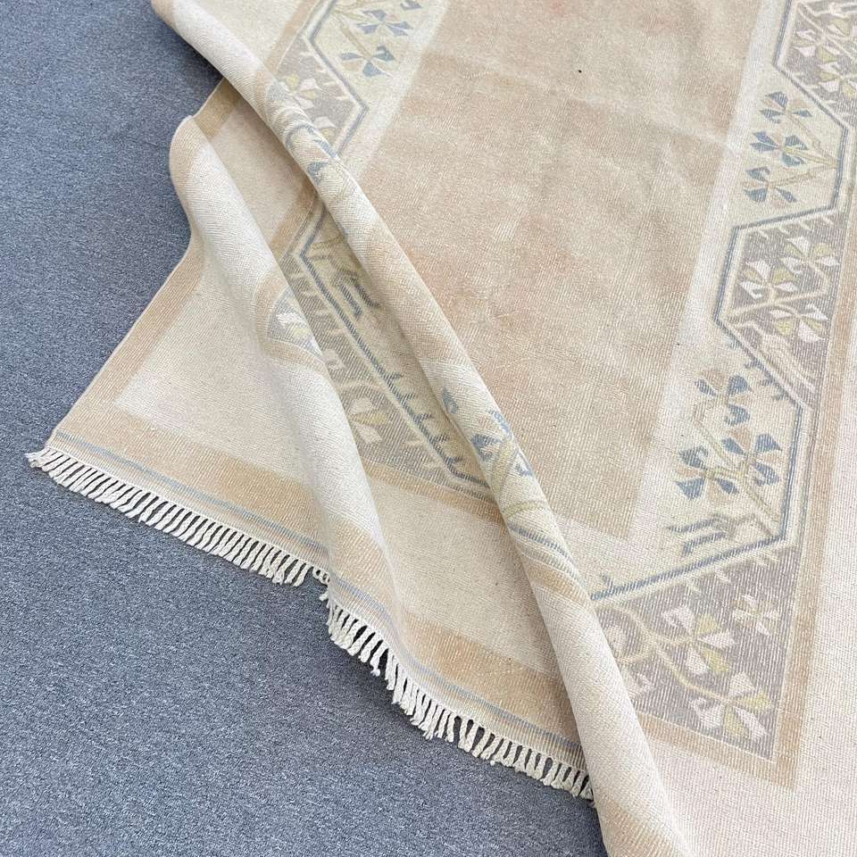 พรมวินเทจขนาดใหญ่ 5.1x8.3 ฟุต พรมตุรกี พรมขนสัตว์สไตล์โอเรียนทัลสีเบจ-น้ำเงิน
