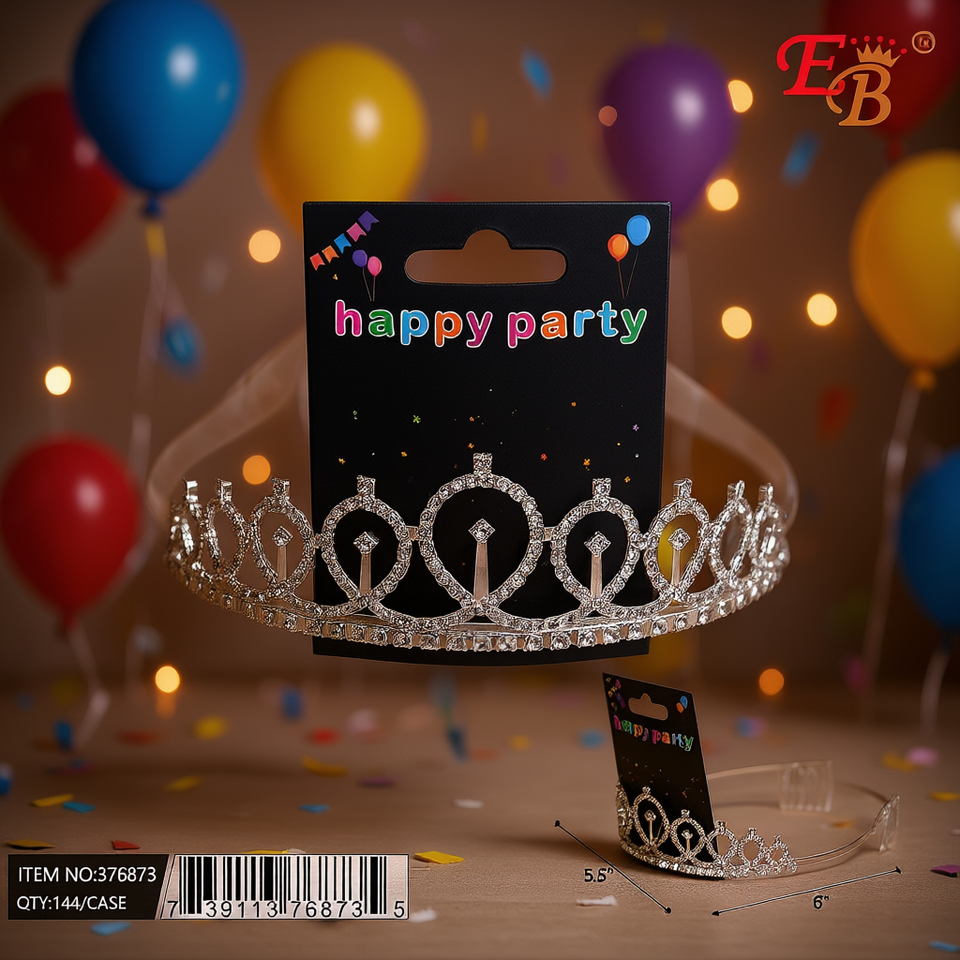 มงกุฎเงิน EB ขนาด 5.5x6 นิ้ว ประดับเพชร สำหรับตกแต่งงานปาร์ตี้เด็ก ใช้ภายในอาคาร