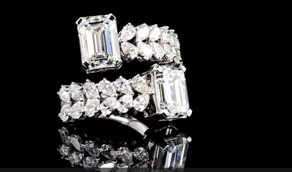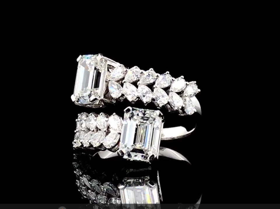 แหวนเพชรแล็บโกรนทรงสี่เหลี่ยมมรกต 5.20 กะรัต ทอง 14K ดีไซน์หรูหรา งานจิวเวลรี่สั่งทำพิเศษ