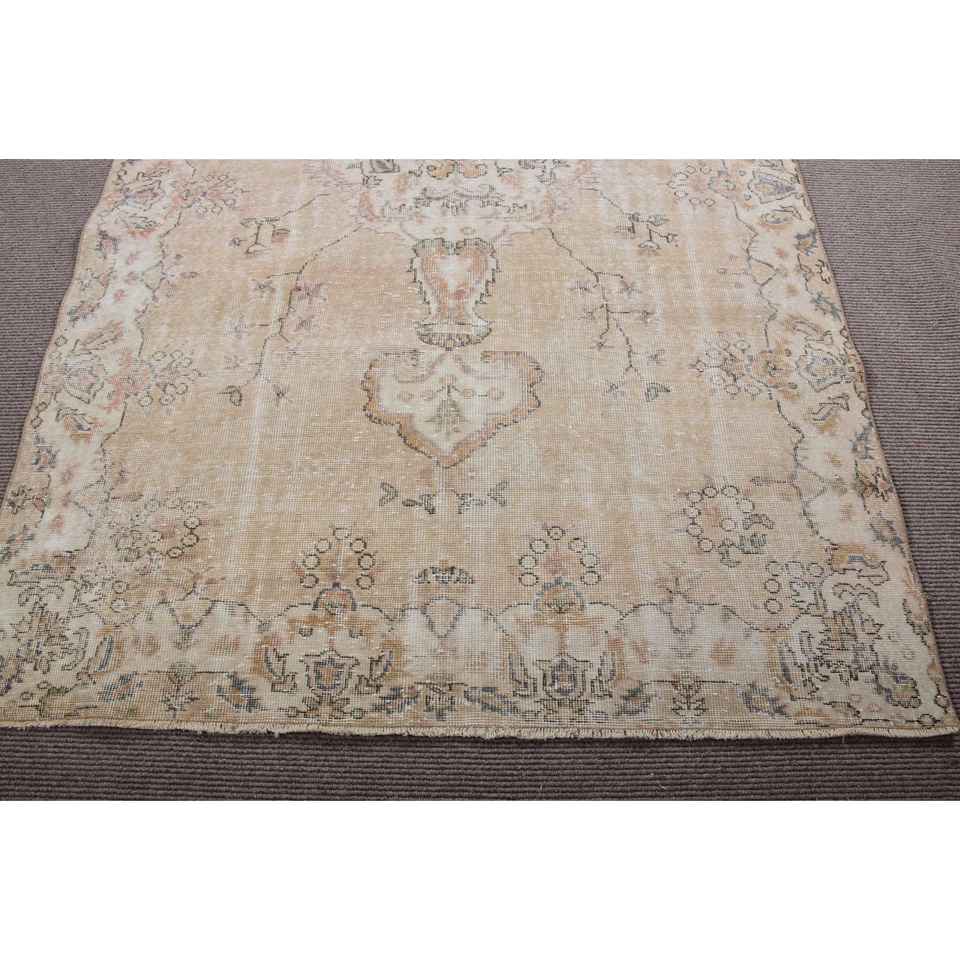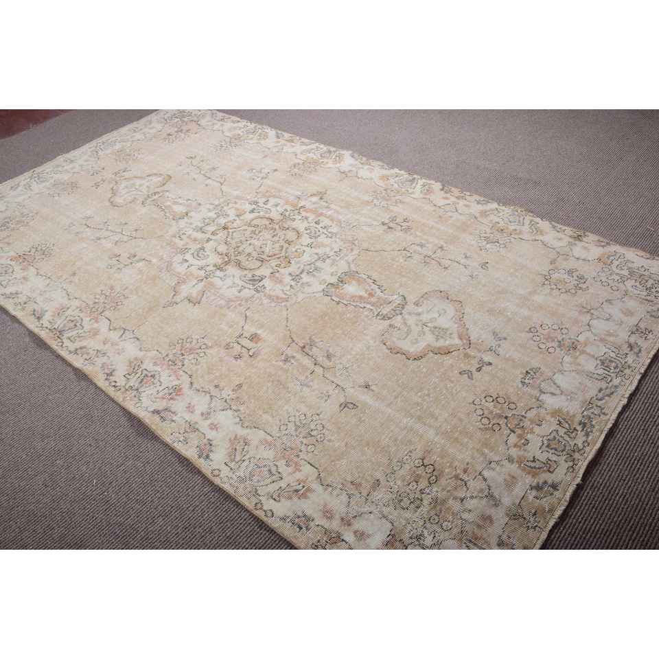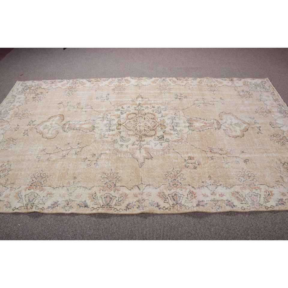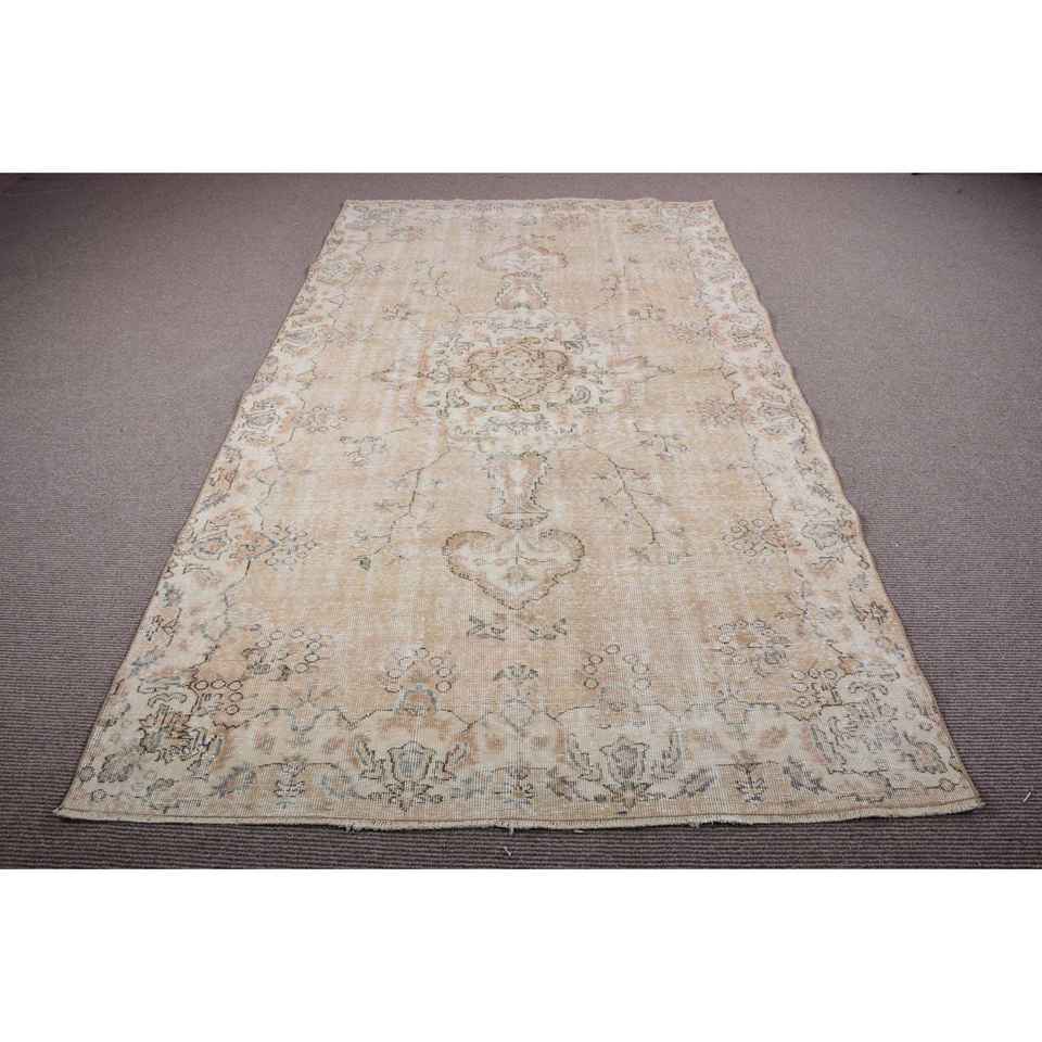 พรมวินเทจขนาดใหญ่ 5.2x9.1 ฟุต พรมตุรกี พรมขนสัตว์เปอร์เซียสีเบจ-น้ำเงิน