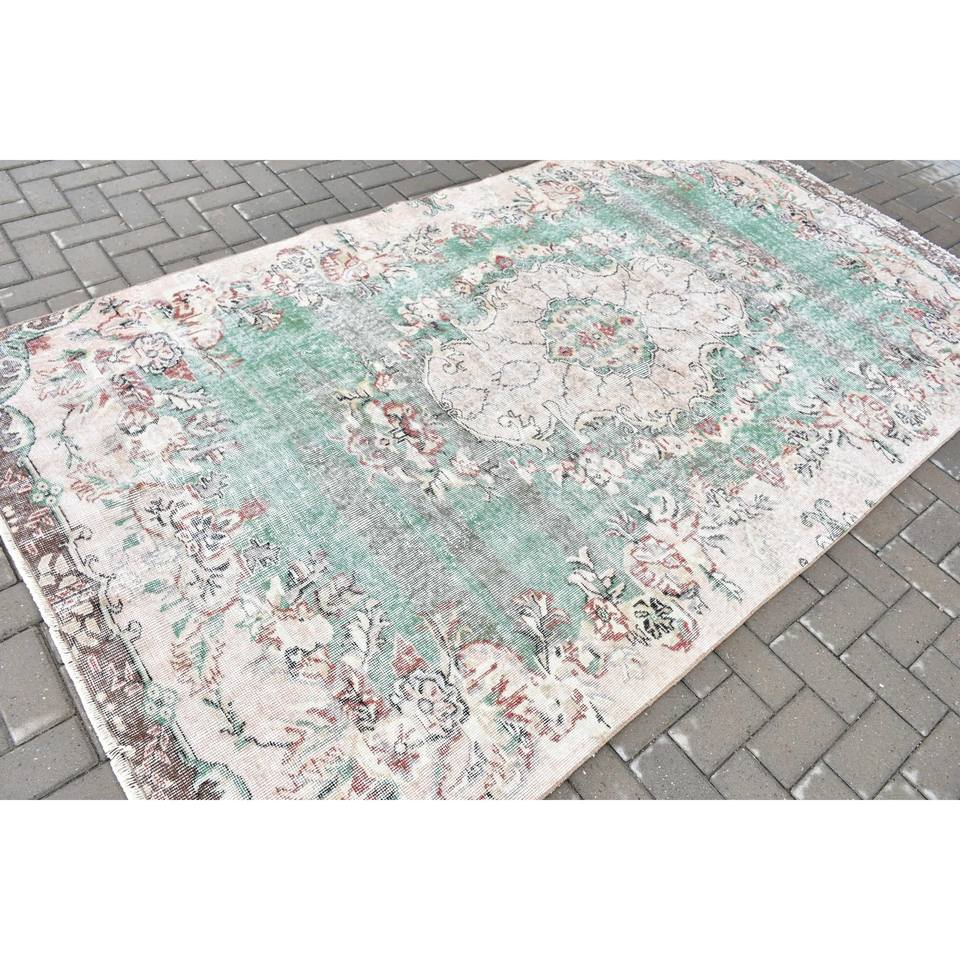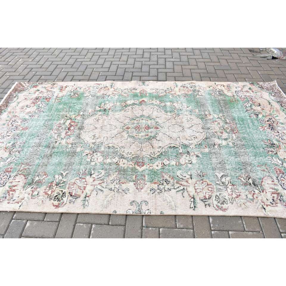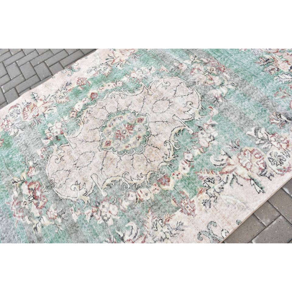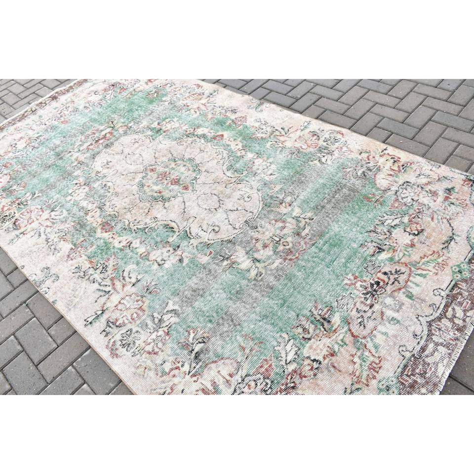 5.3x9.6 ft Large Turkish Vintage Rug, Green Check Wool Rug